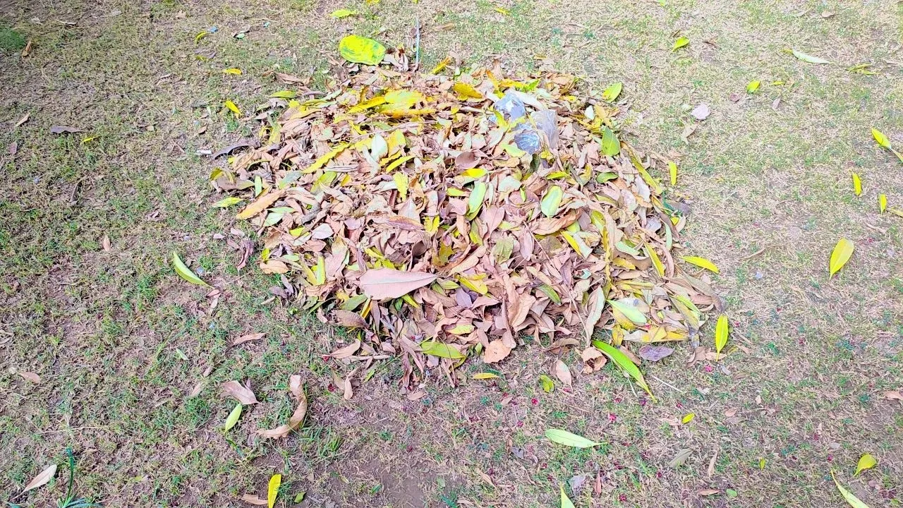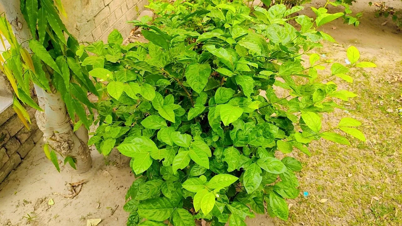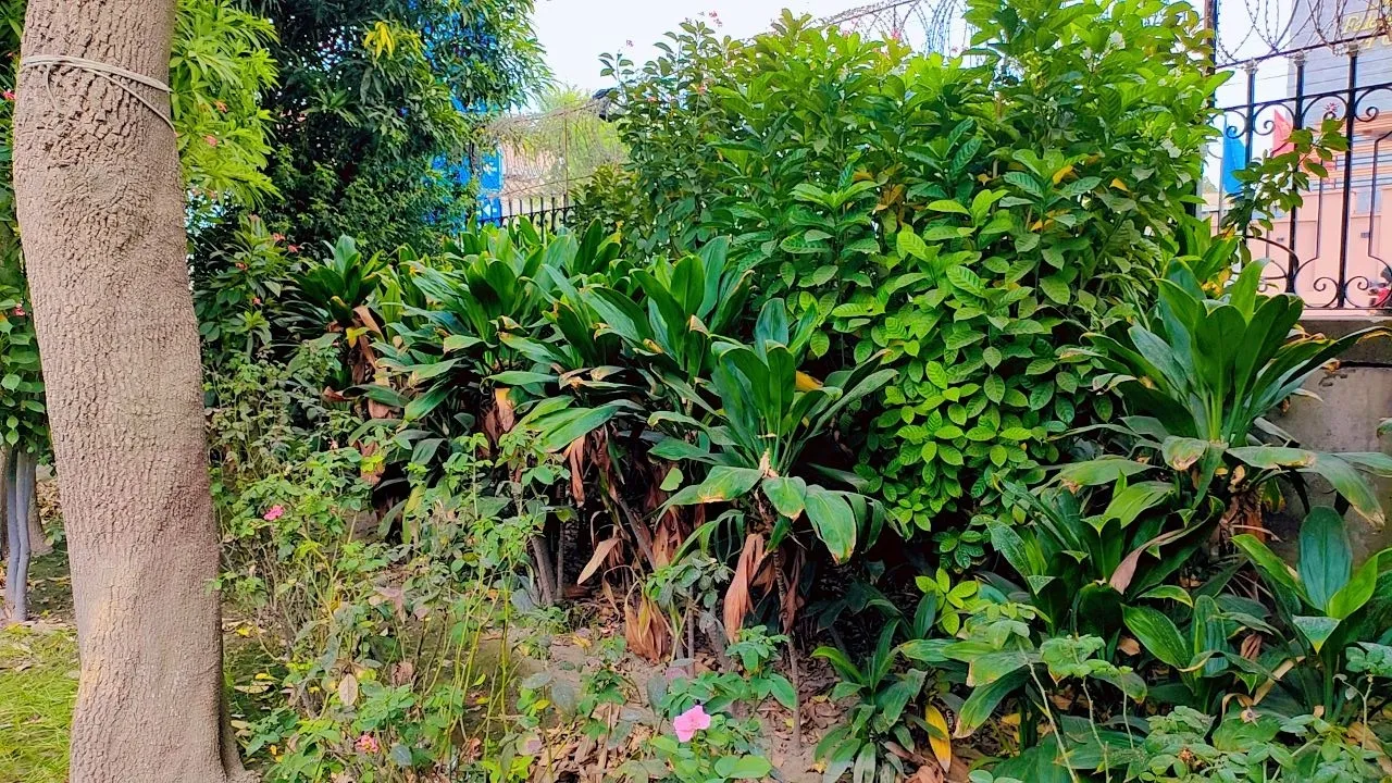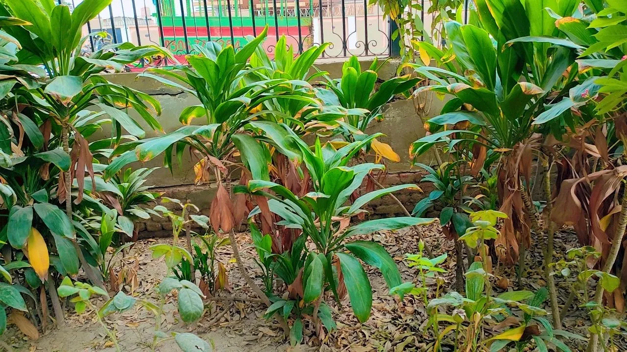When it grew a little, there were many leaves gathered at one place. After cleaning the whole ground, their color changed from green to strange because of the sun, but this color also looked very beautiful.
