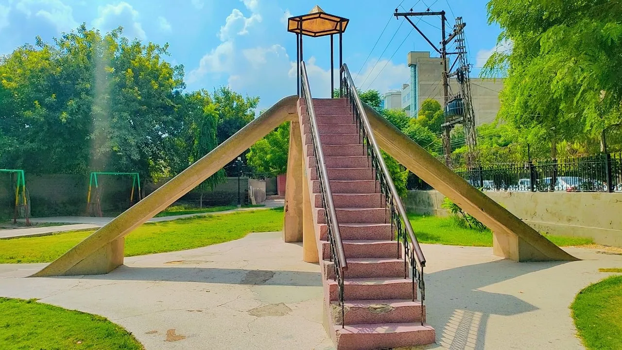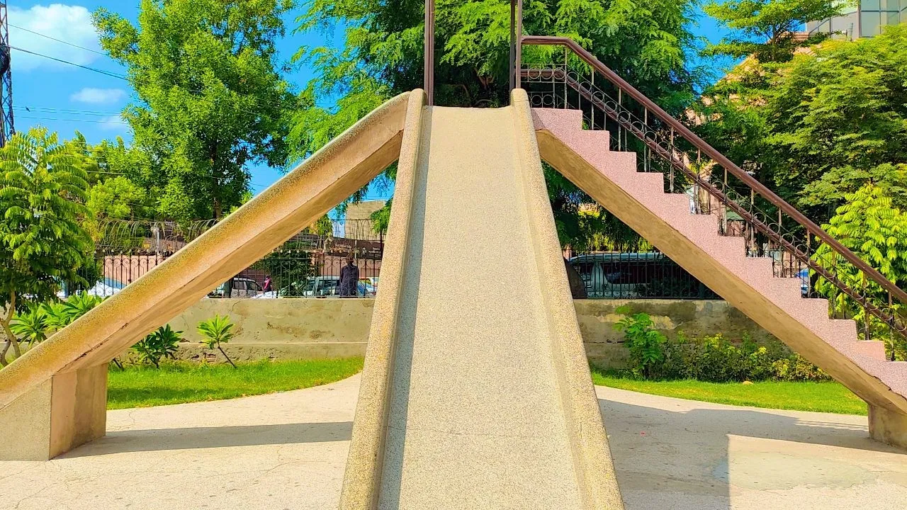 If you go a little further, there was also a childhood favorite swing here and the second side of it is made of marble and stairs are installed on the first side and like a human slide, he goes down quickly, then this thing. The kids were loving it and there were too many kids making noise and having too much fun.