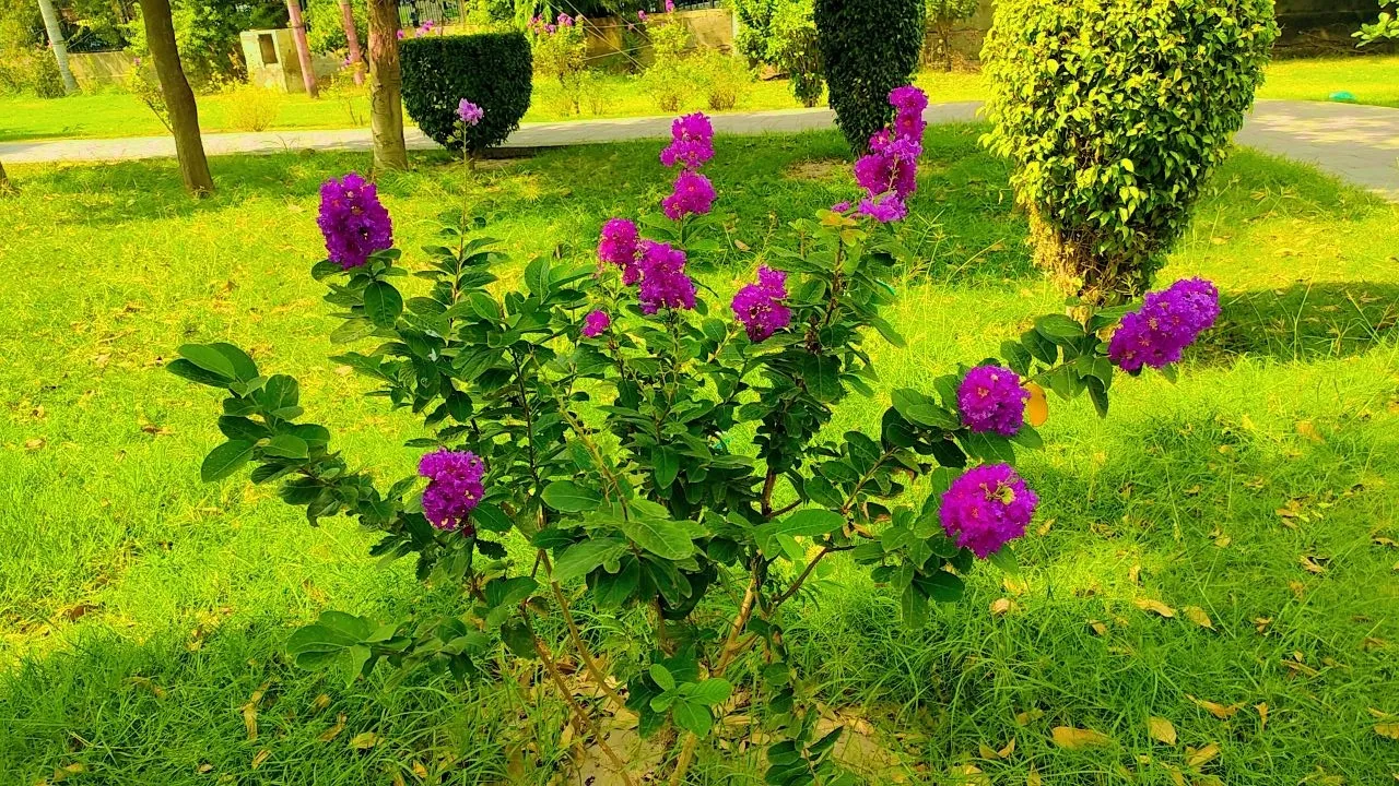 Inside this park, I did not see red flowers anywhere, it was man. He took care of this park, so he was saying here that white color and pink color flowers are grown here more and people living here like these kind of flowers more.