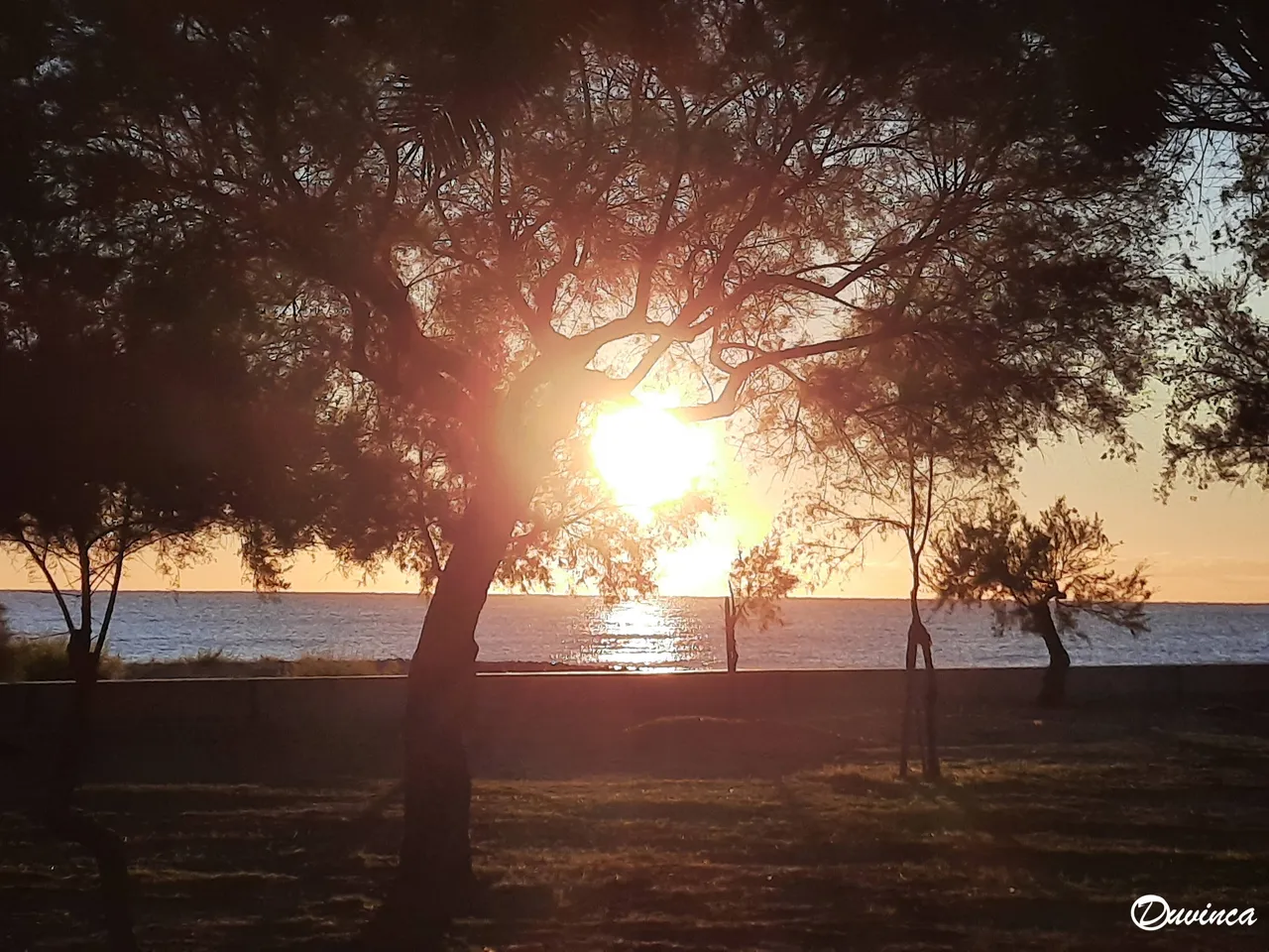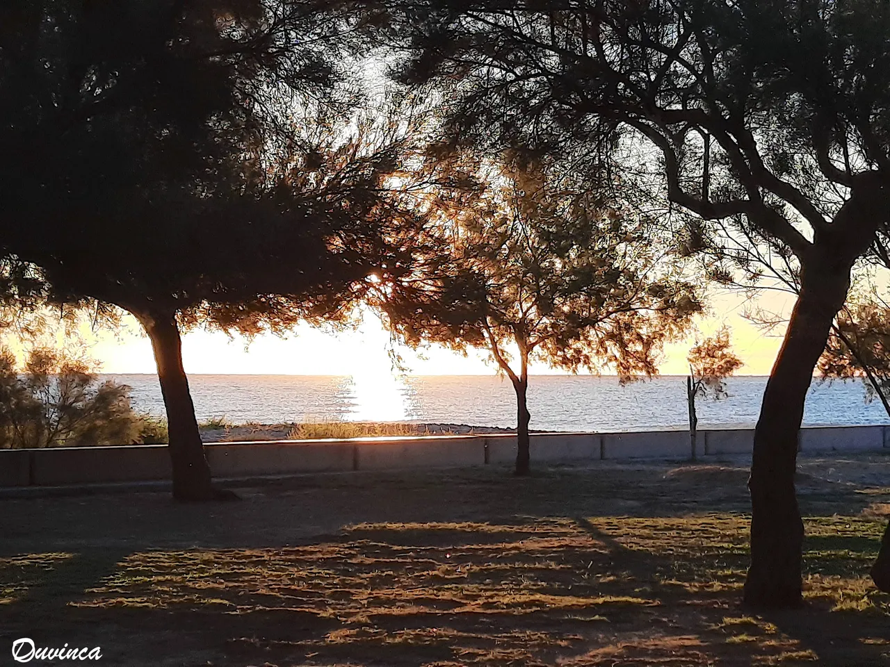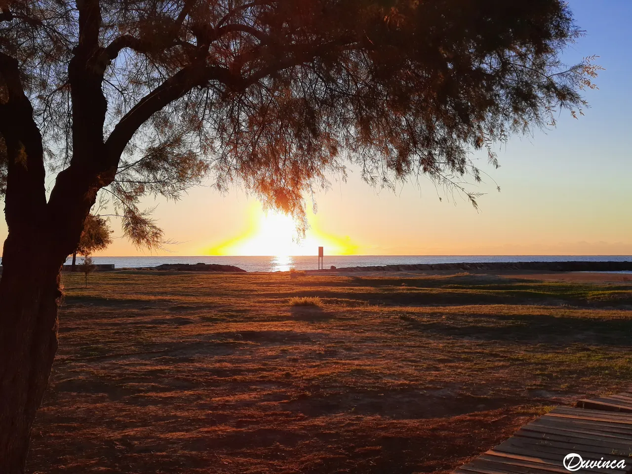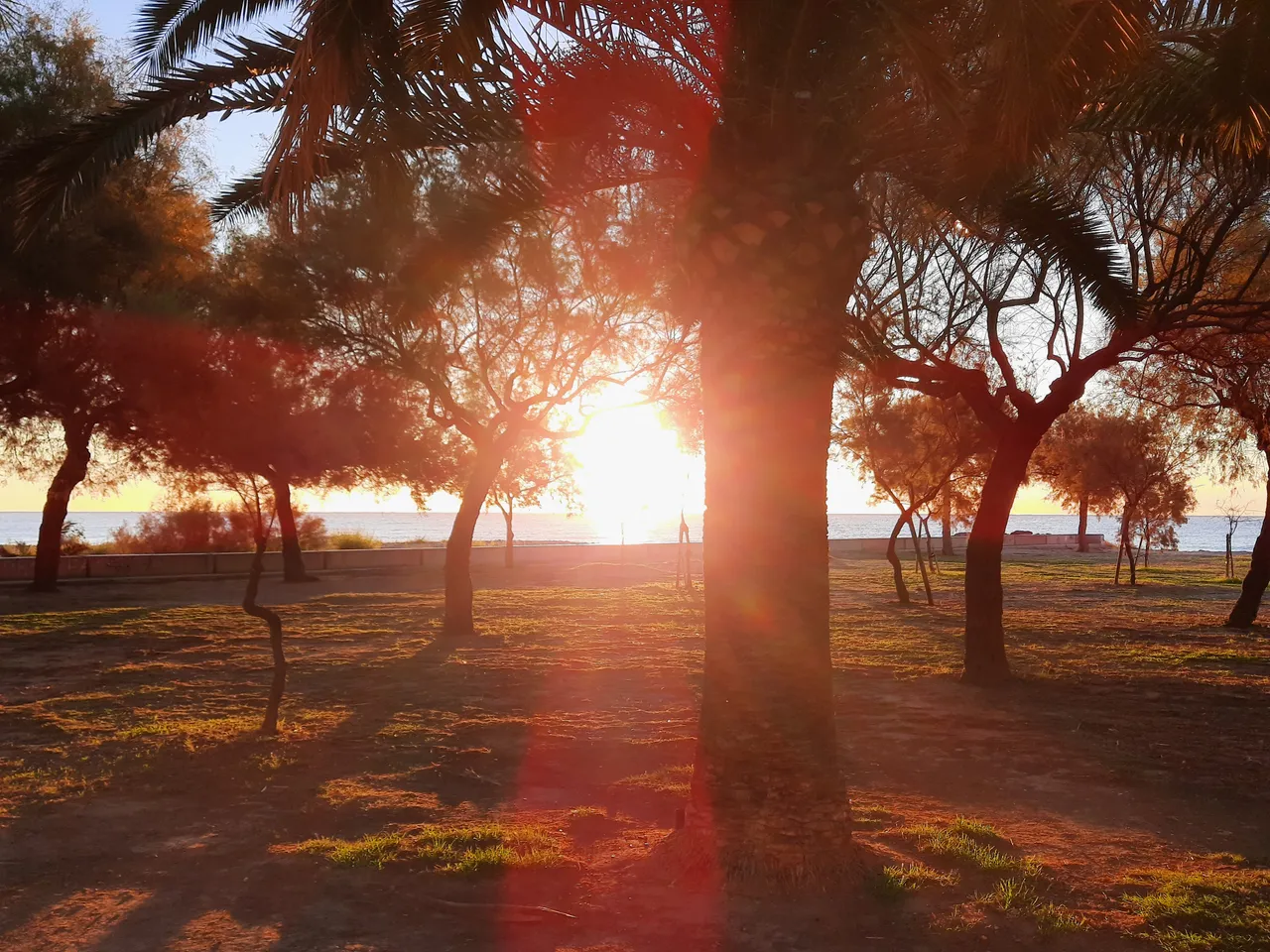Now in the wooded area we feel at peace and we play with the sun by hiding between trunks, but the sun's rays pass through the crowns of those lucky trees that every day witness the magic of sunrise by the sea.