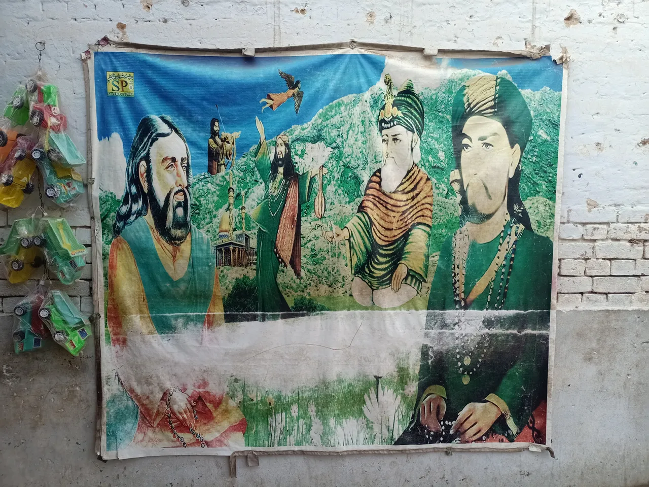 There was this banner, I asked the local people about it, and they told me that, these were people from the past who have some powers gifted to them from ALMIGHTY. You can see in the picture, there is a person who is flying in the air. they think that flying was the power given to them by the almighty.