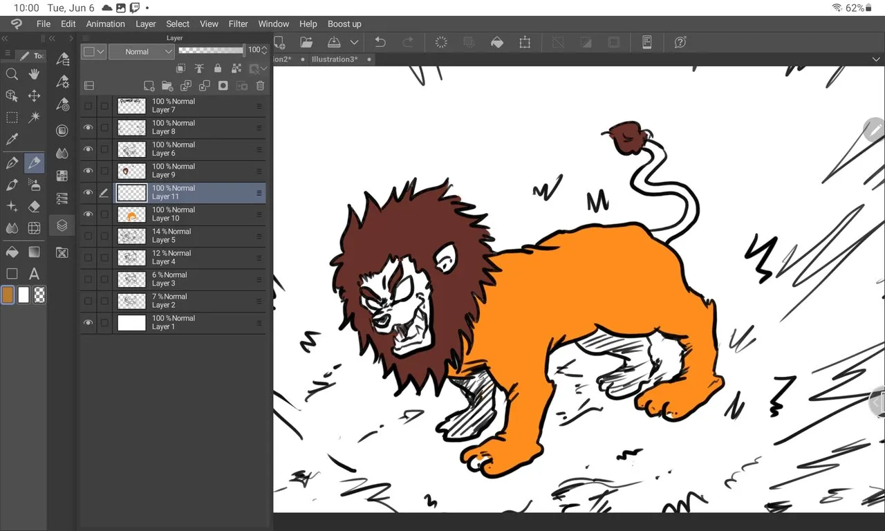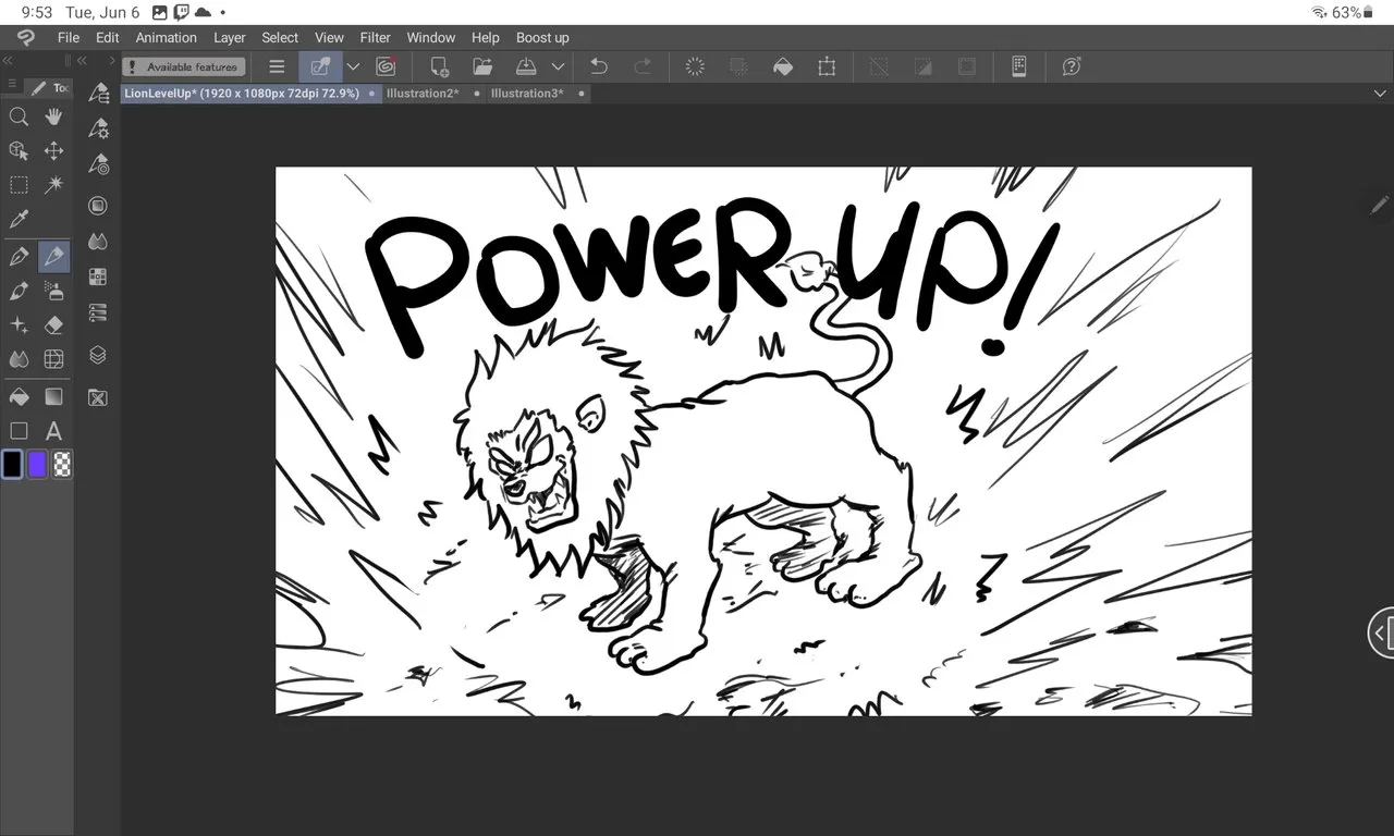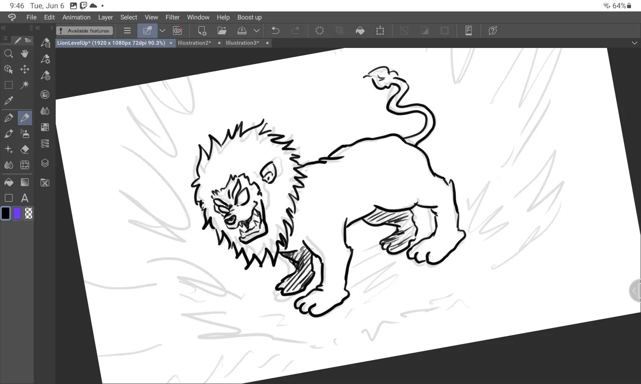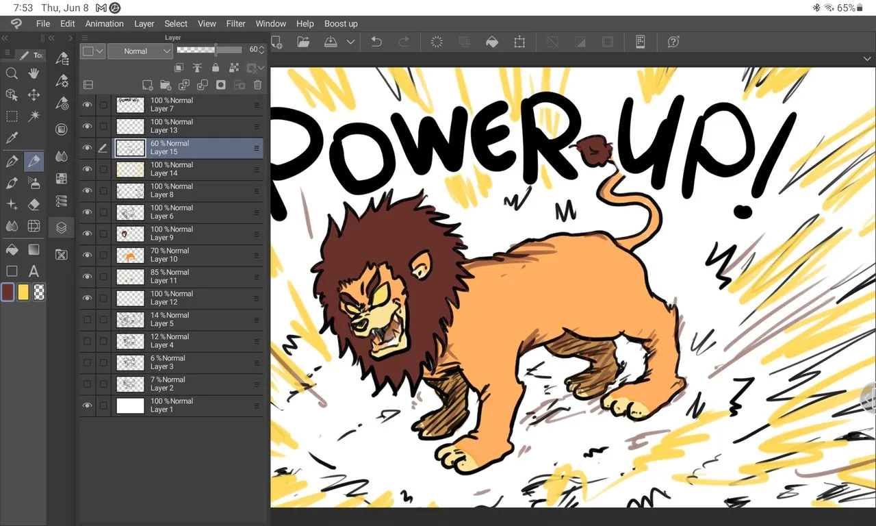 For this challenge, I first wanted to make an animated image (.Gif) with a Lion turning Super Saiyan. The transformation animated would've taken too long to draw, I realized I couldn't make a full animated image without procrastinating, so I decided to draw a normal illustration of the same idea.