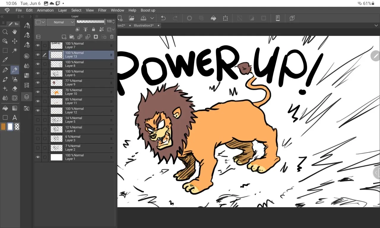 To make sure of the final result, I restored the layer that says "Power Up" after keeping it hidden for a while.