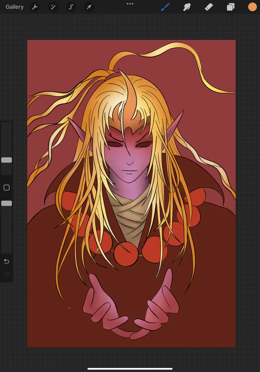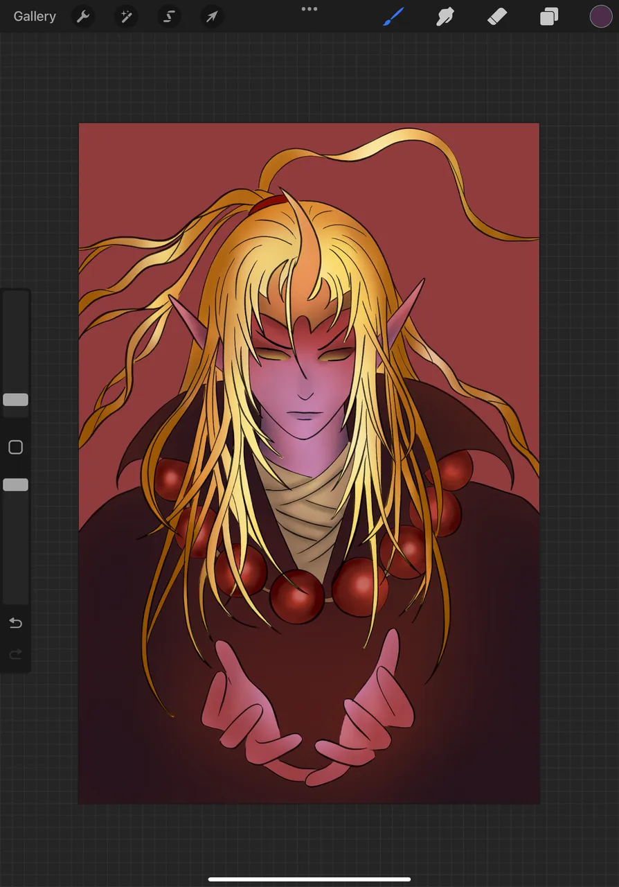 After finishing the shades and glows on him (those that were created by the fire in his hands) I still felt like something was missing and the whole drawing felt so monotone, so I decided to take stuff to another level and add more detail - while not trying to overcrowd the whole piece.