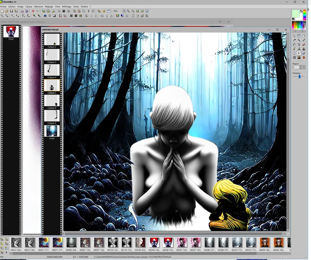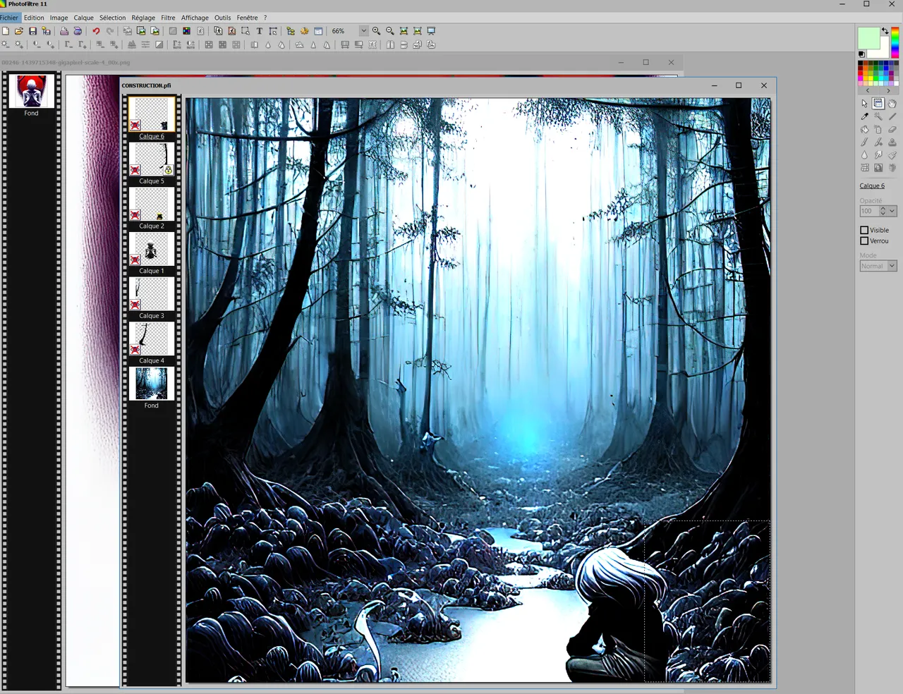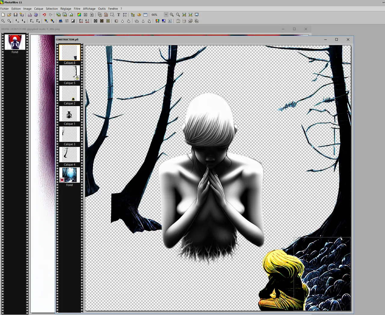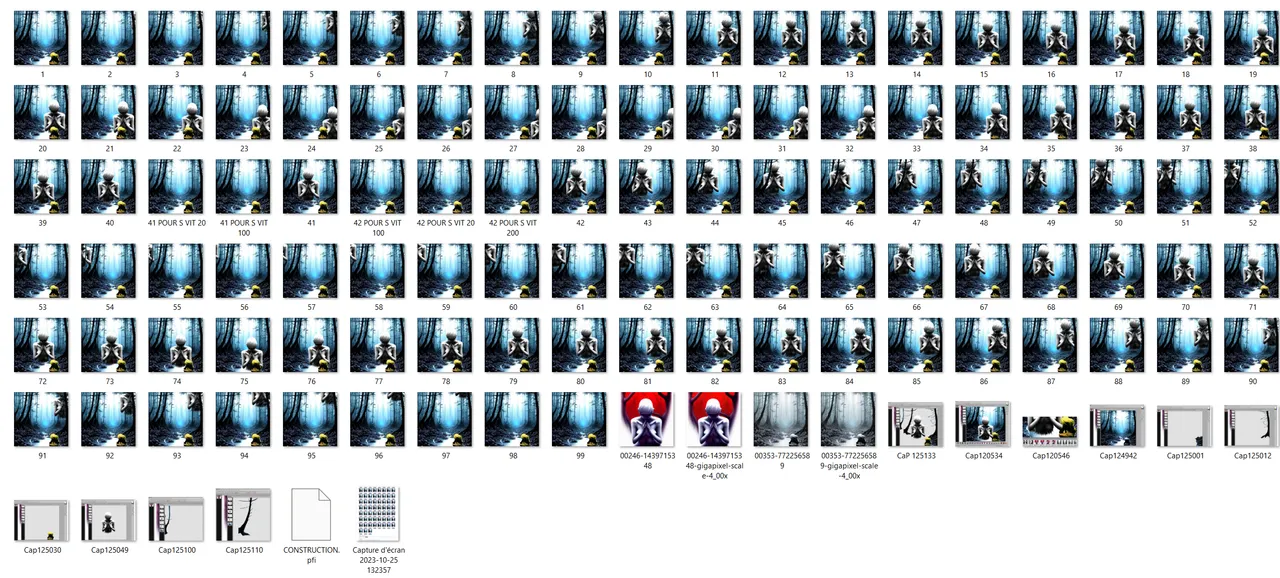 The 6 images that follow are my cutouts to create my movements. I specify that my software only offers me 4 positions of situation in the image and during the creation I had to modify its position to make the tree or another object in front or behind the spectrum