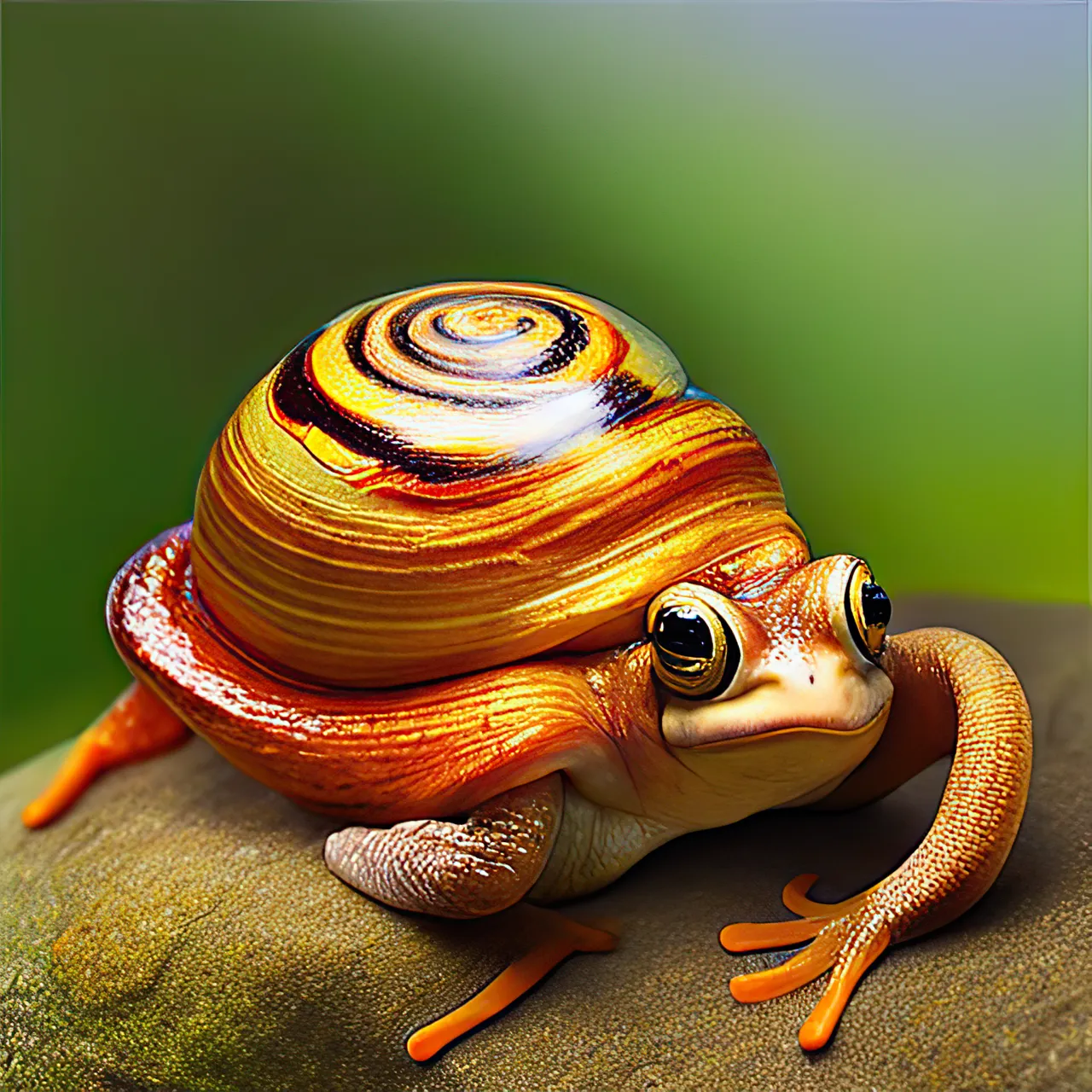 I absolutely wanted a snail shell with a frog's head. I couldn't get my fingers with it. I also generate a font image to blend the two images together. The background image gave me a lot of trouble.