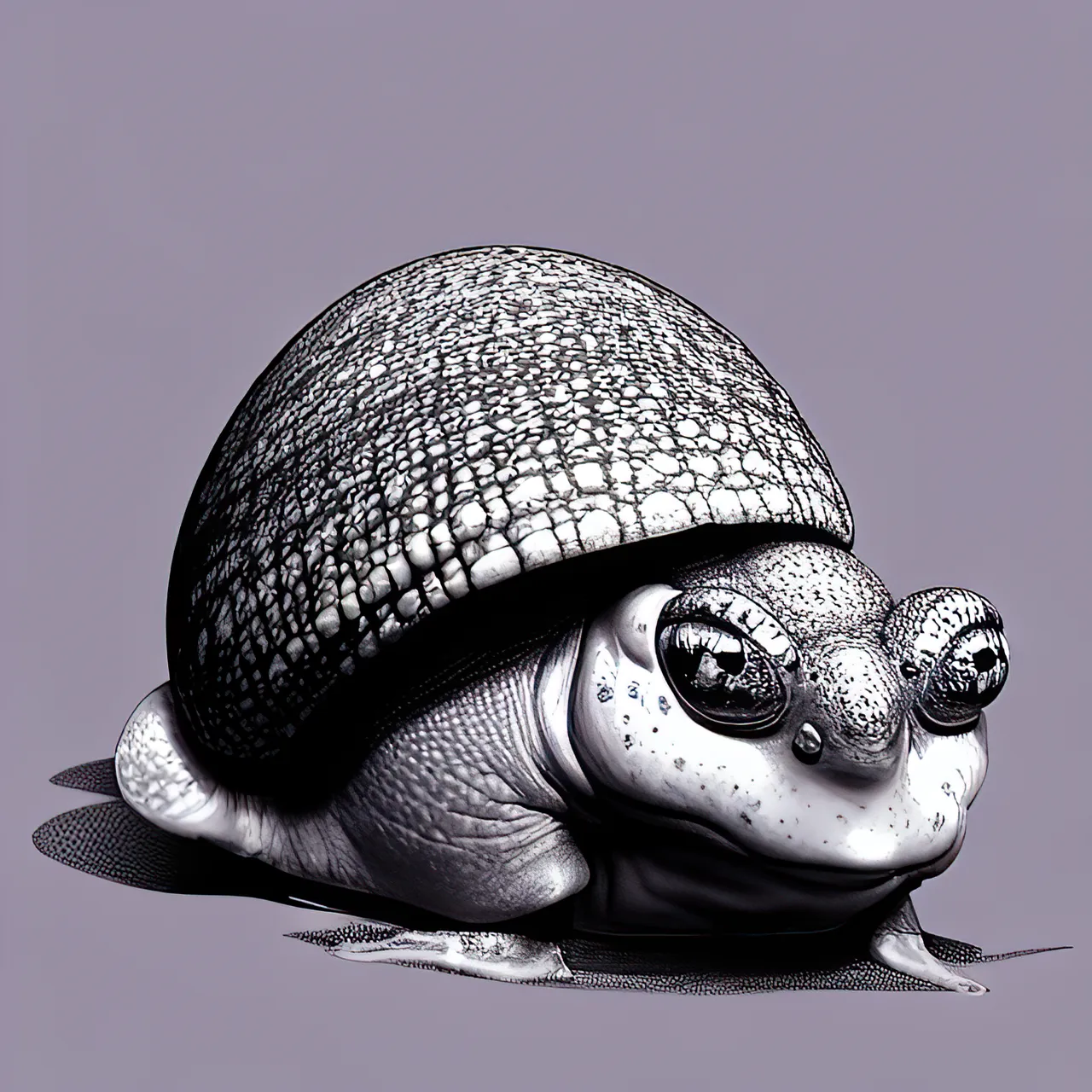 I especially didn't want to use and post an image generated by my AI without working on it afterwards. I like black and white, I used everything in a tone of gray. I have tried to spawn a cat snail but it was not conclusive either. Another tried the toad cat which was also not a real success. My primary objective was to create a Hybrid.