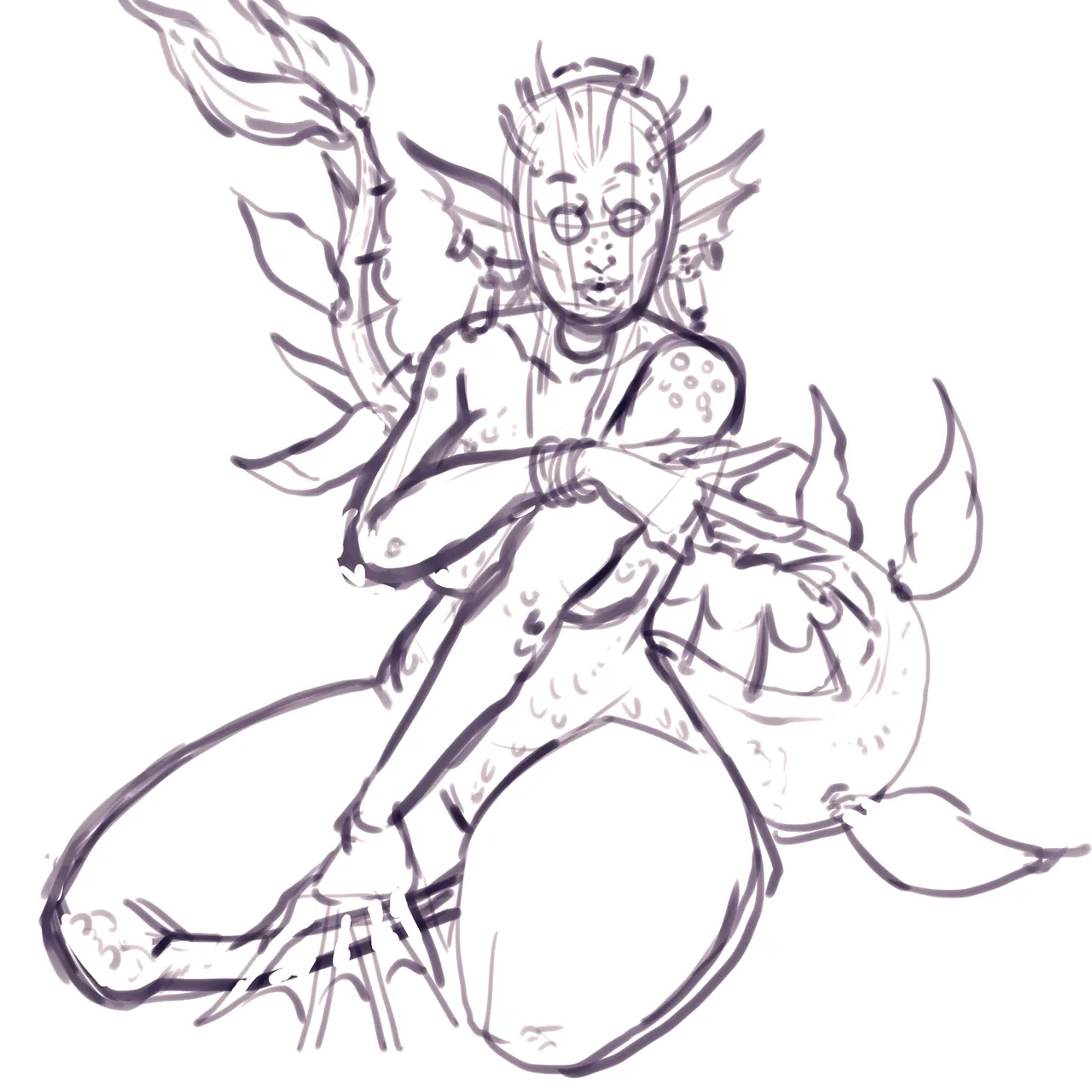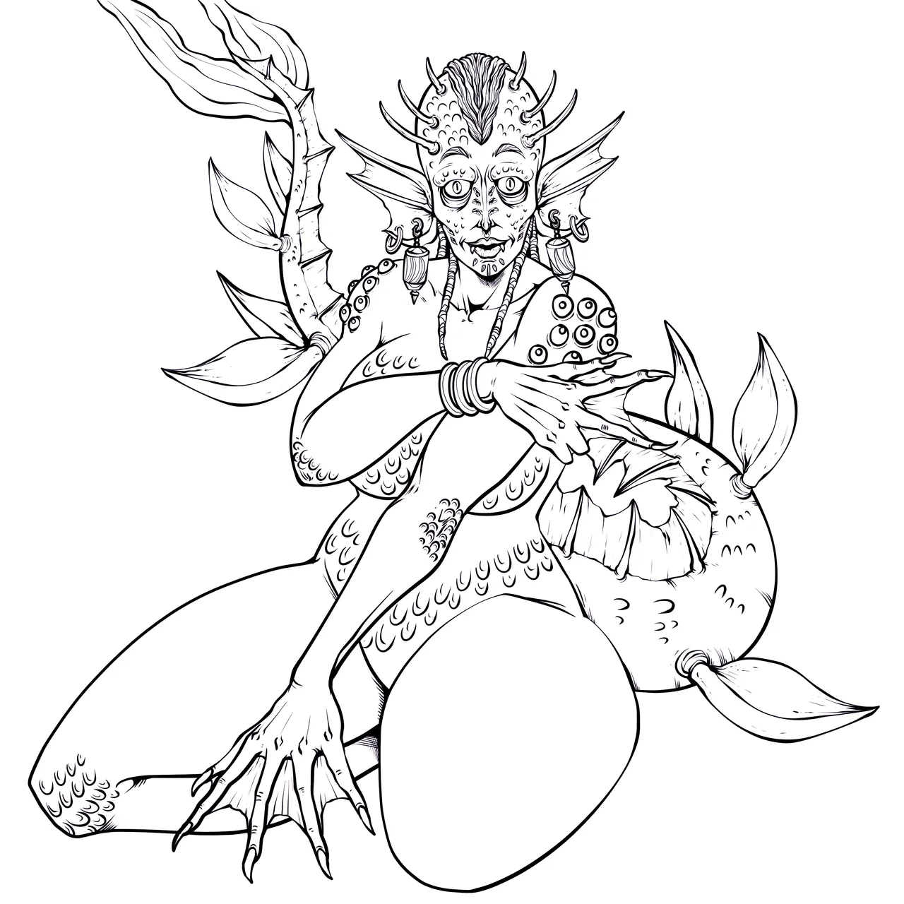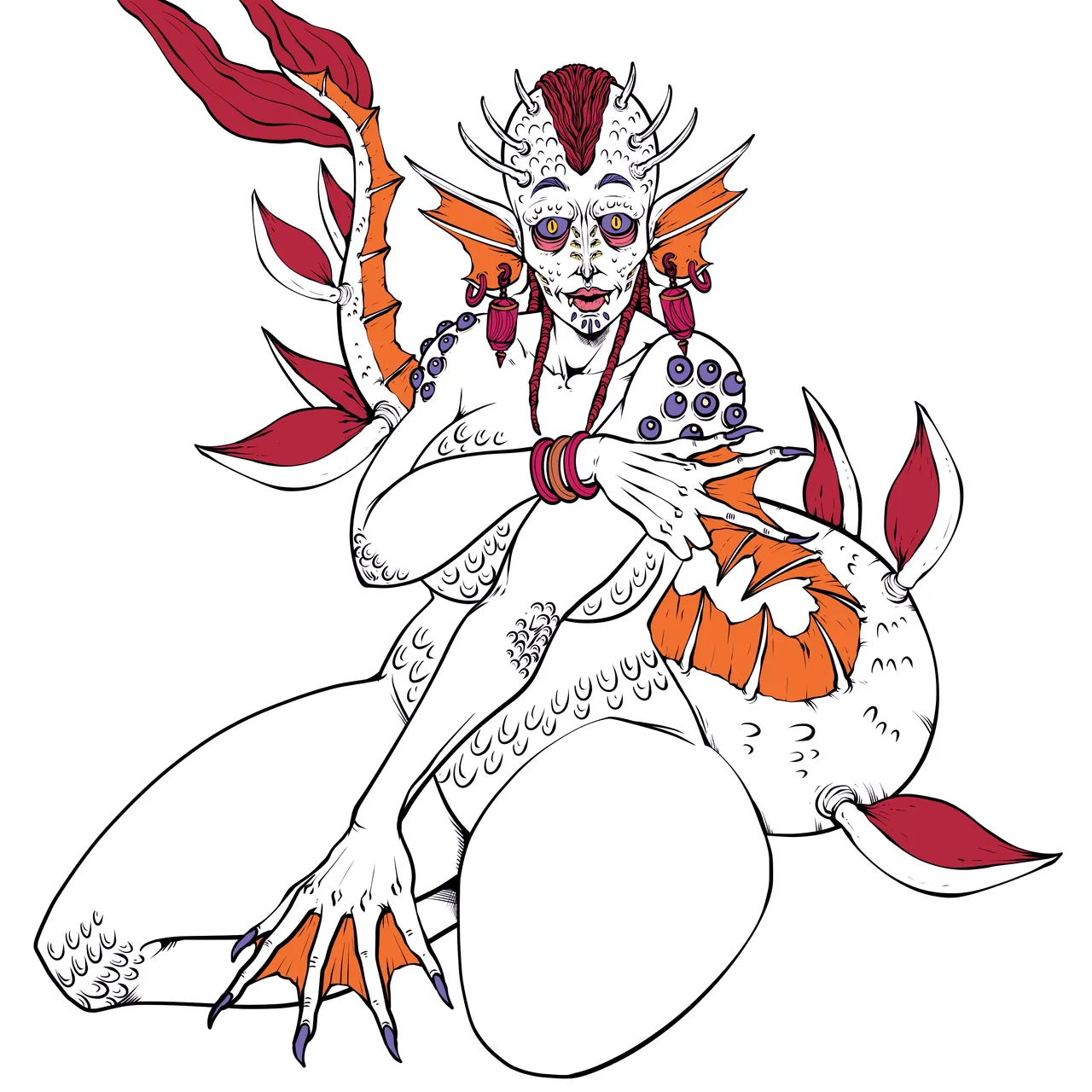 From the results of the cloning, a human-like creature emerged in the form of a woman with green skin and scales on her body and a tail like a dragon's.