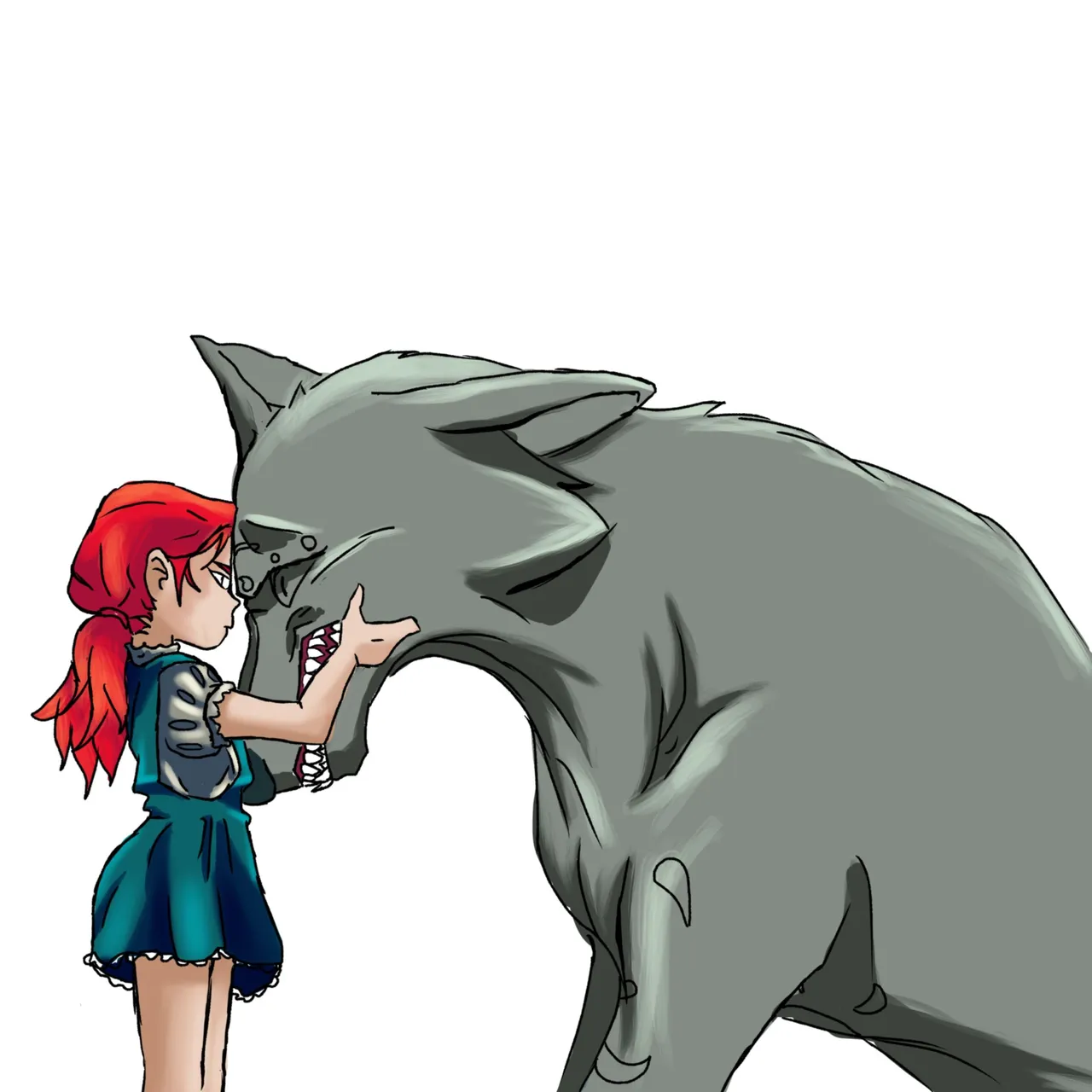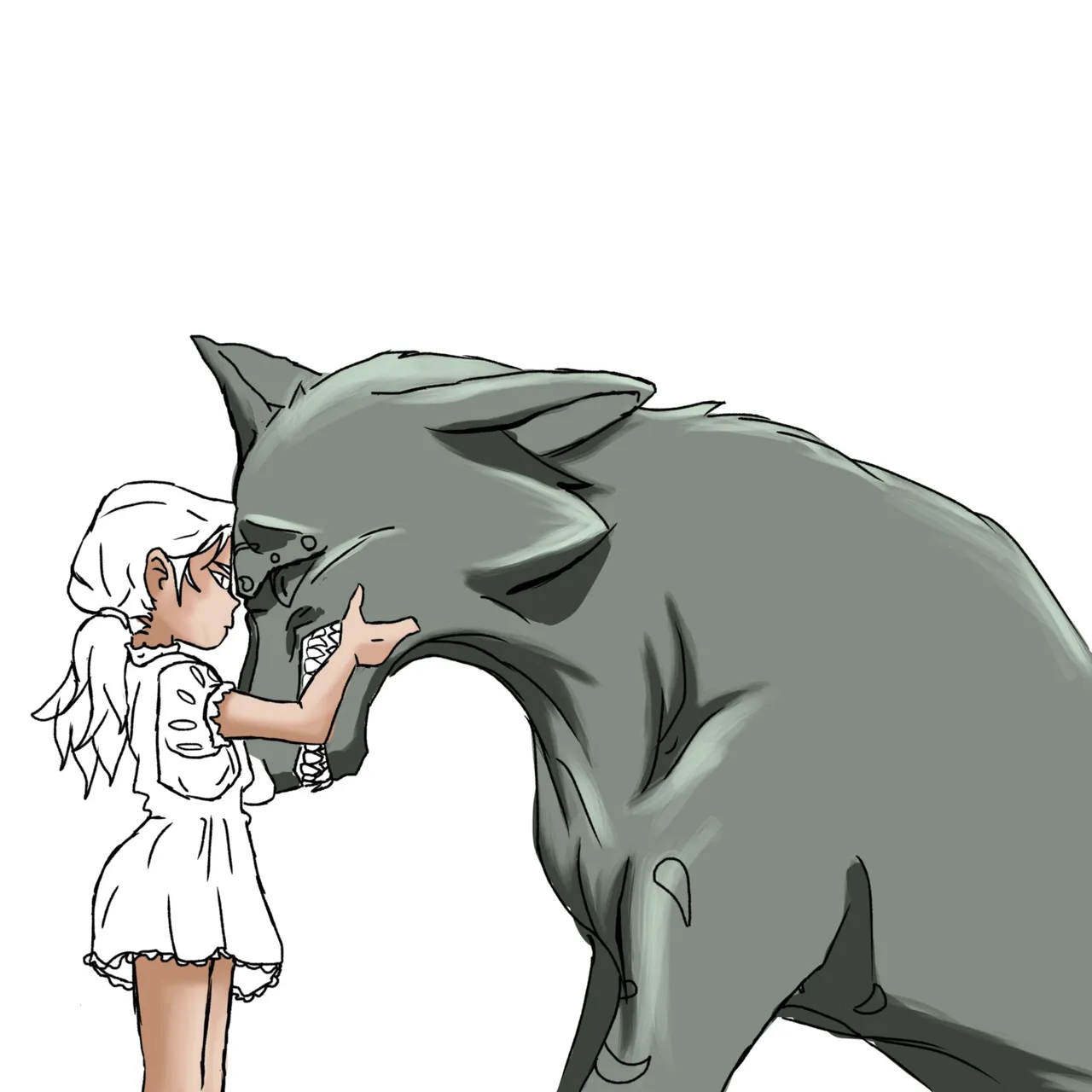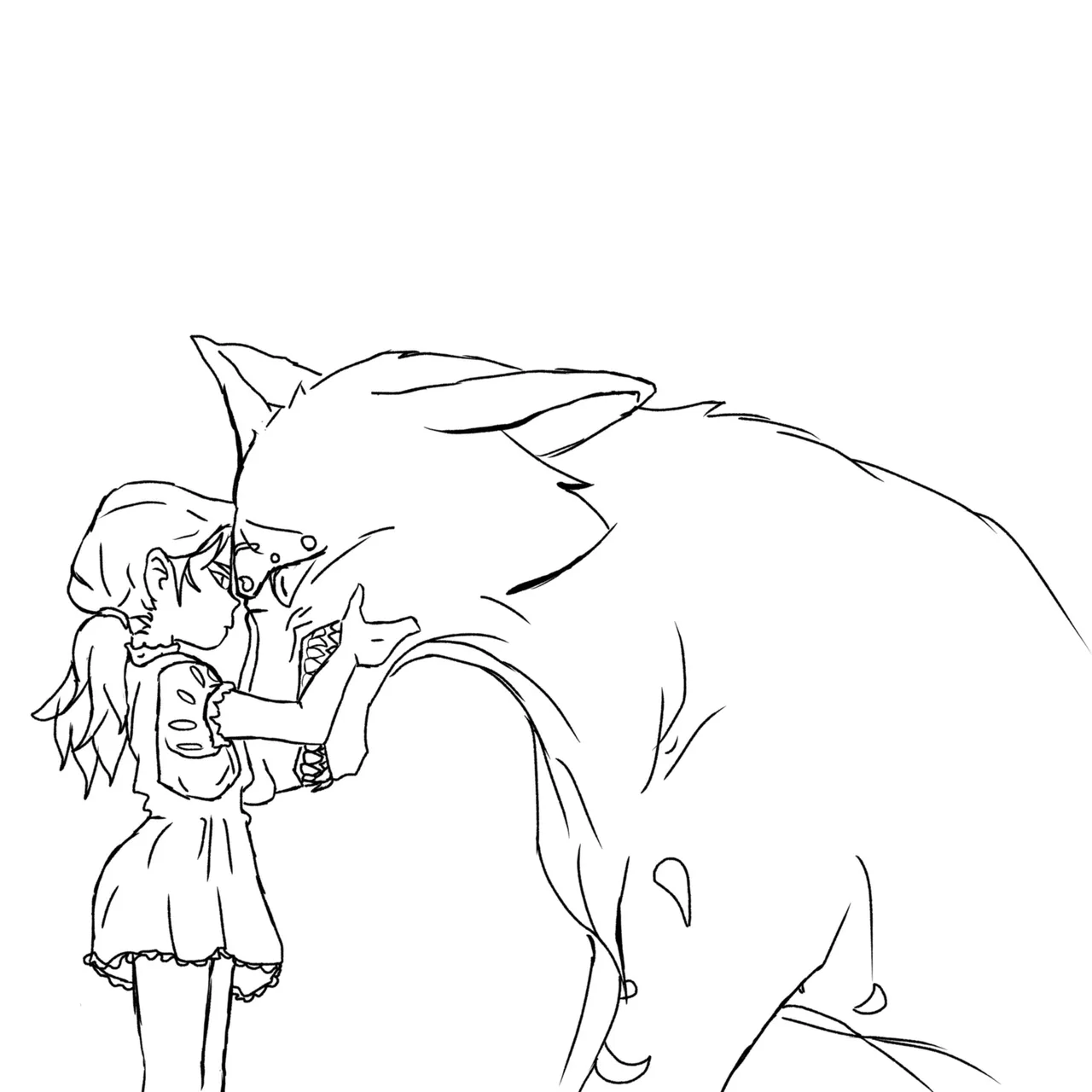 Ya teniendo esa idea clara encontré una buena imagen en internet solo que la niña sonreía y el perro no se parecía a Vulgine entonces tuve que alterar toda la imagen, pero luego de un rato de esfuerzo agarro la forma que quería, entonces me puse de una ves a colorearlo primero empecé por el pelaje de Vulgine de un color oscuro no tan claro y mientras a Tarsa le pinte su piel de una tonalidad de una imagen randon.