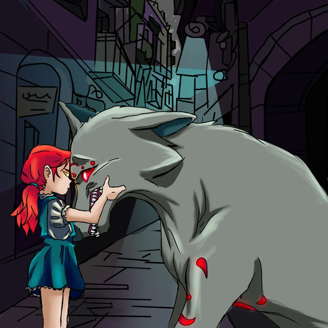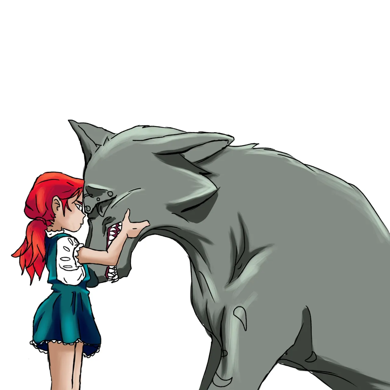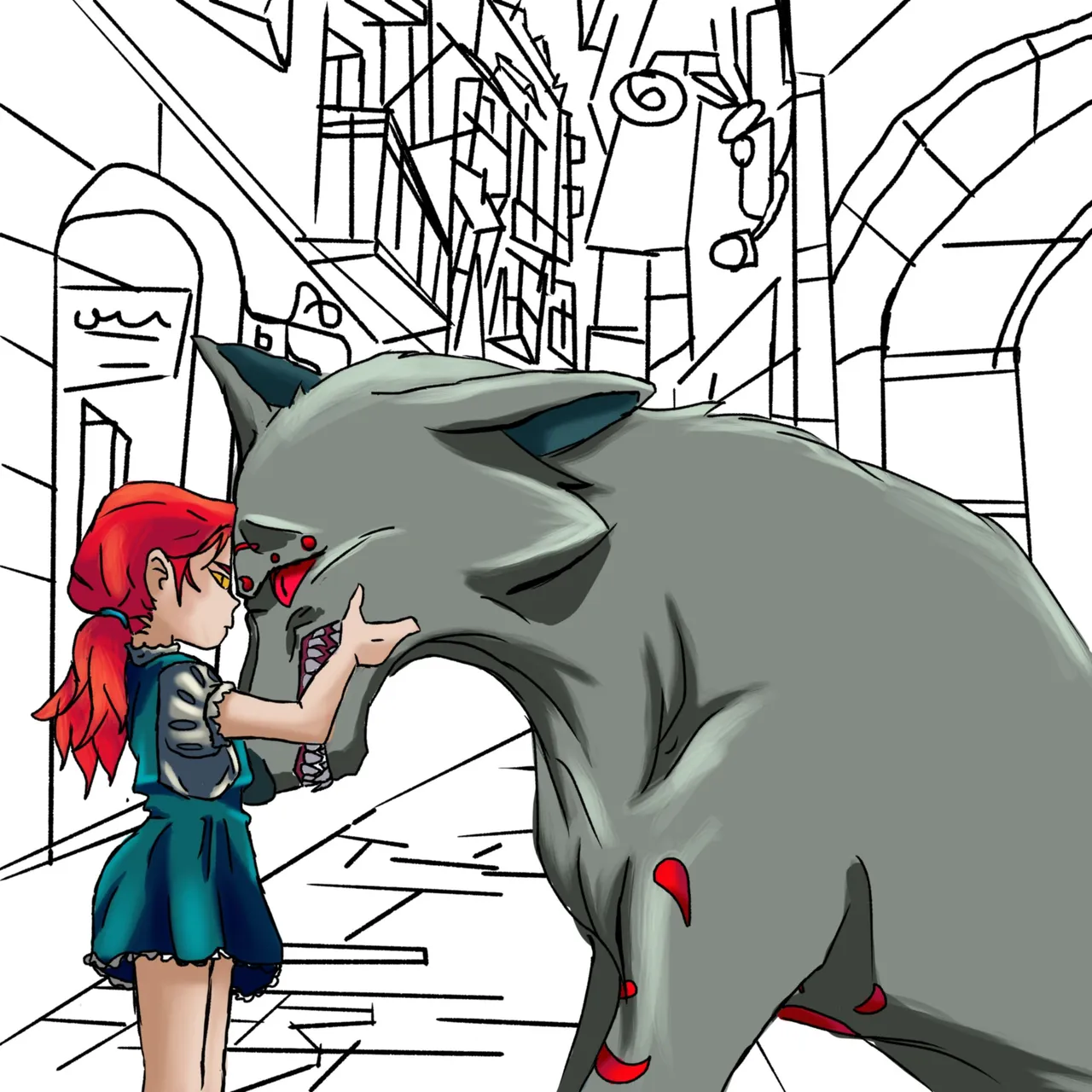 Ya teniendo esa idea clara encontré una buena imagen en internet solo que la niña sonreía y el perro no se parecía a Vulgine entonces tuve que alterar toda la imagen, pero luego de un rato de esfuerzo agarro la forma que quería, entonces me puse de una ves a colorearlo primero empecé por el pelaje de Vulgine de un color oscuro no tan claro y mientras a Tarsa le pinte su piel de una tonalidad de una imagen randon.