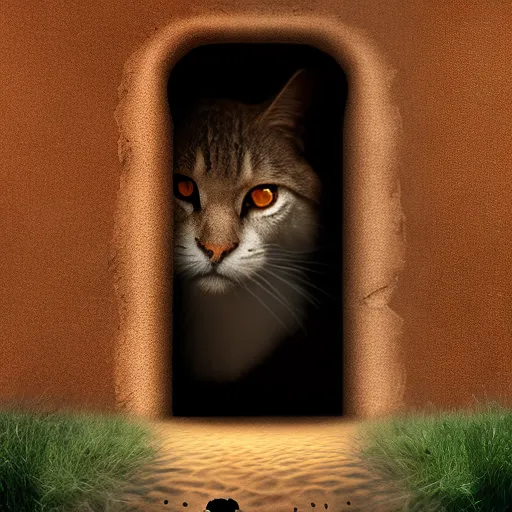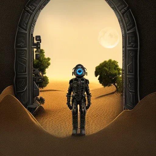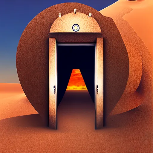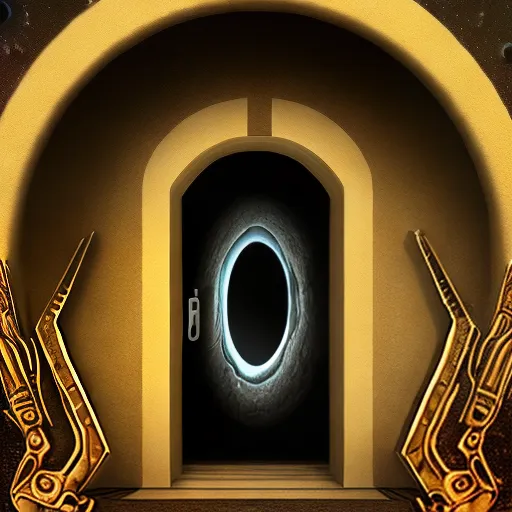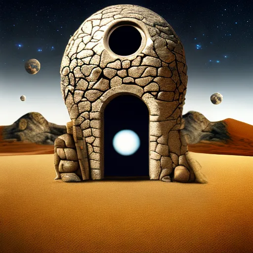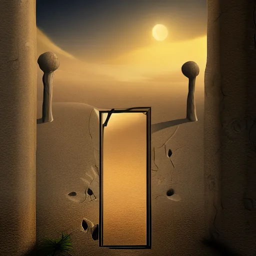 This is a Surreal Image, with the Gateway in a Tomb with the Moon,