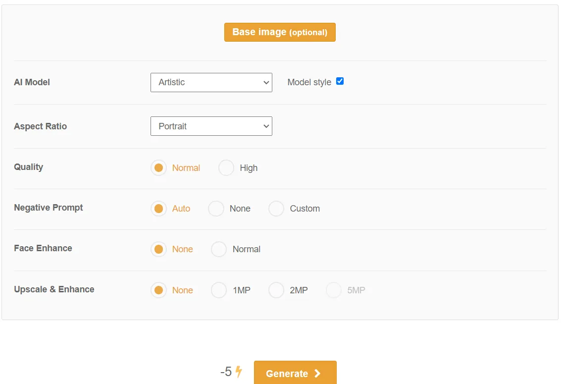 But, of course, you can also generate images based on a prompt, without uploading any photo/ image at all.