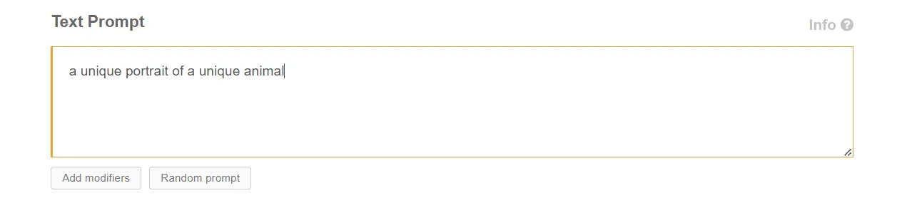 Because I wanted to obtain the photo of an animal, I decided to change the prompt with: