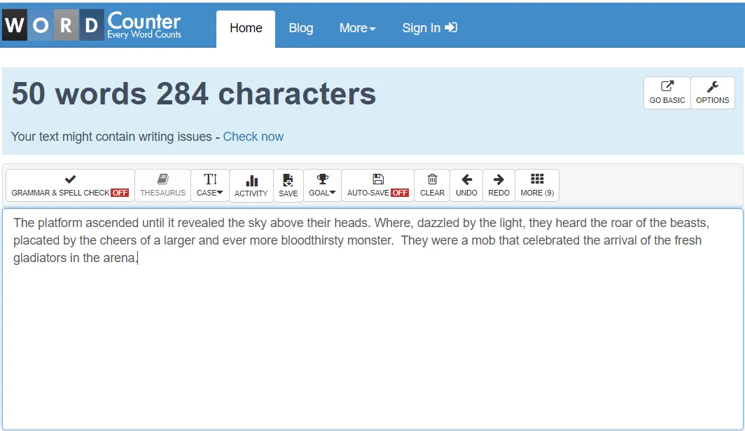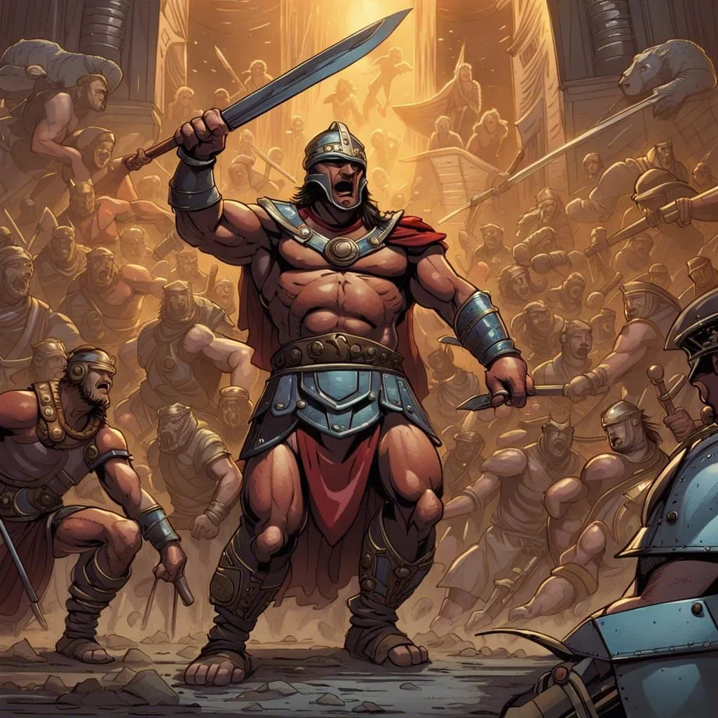 The platform ascended until it revealed the sky above their heads. Where, dazzled by the light, they heard the roar of the beasts, placated by the cheers of a larger and ever more bloodthirsty monster. They were a mob that celebrated the arrival of the fresh gladiators in the arena.