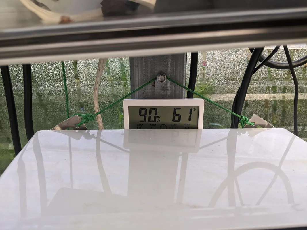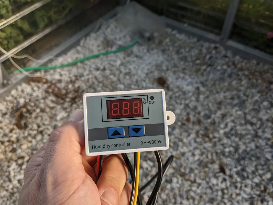Seems my different humidity sensors give different readings, but good to see it is raising the humidity much higher than the 20-30 percent it would stay at without them. Even trying to run two foggers full time in the green house only nets me around 35% so I think adding lots of water via the misters controlled by the humidistat is the way to go.