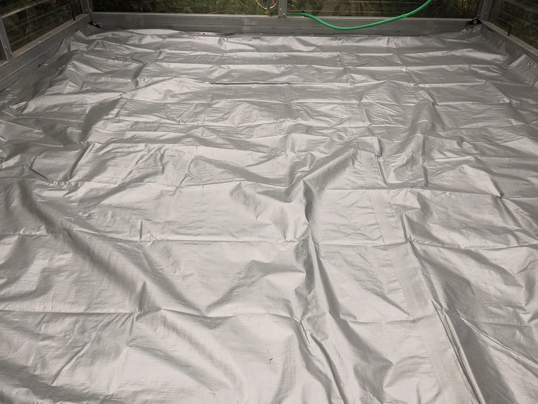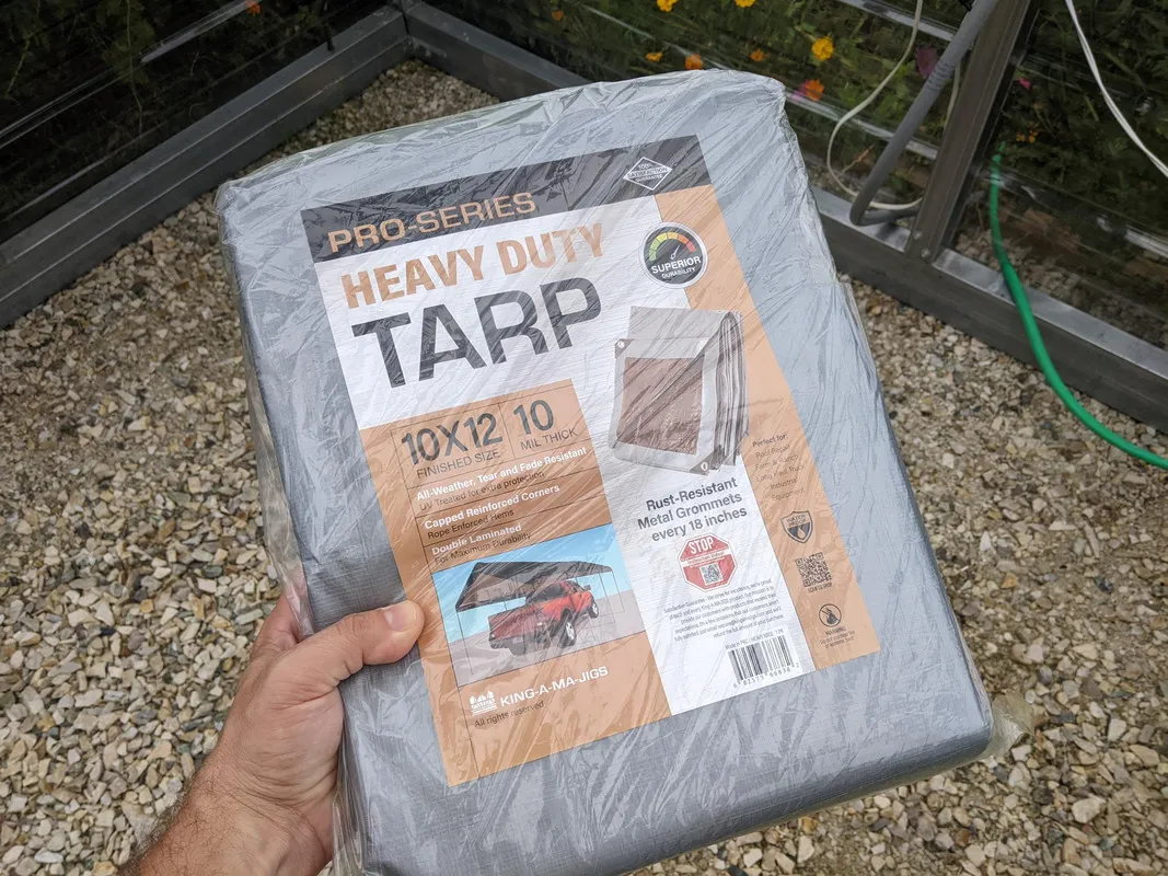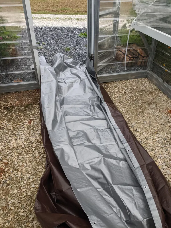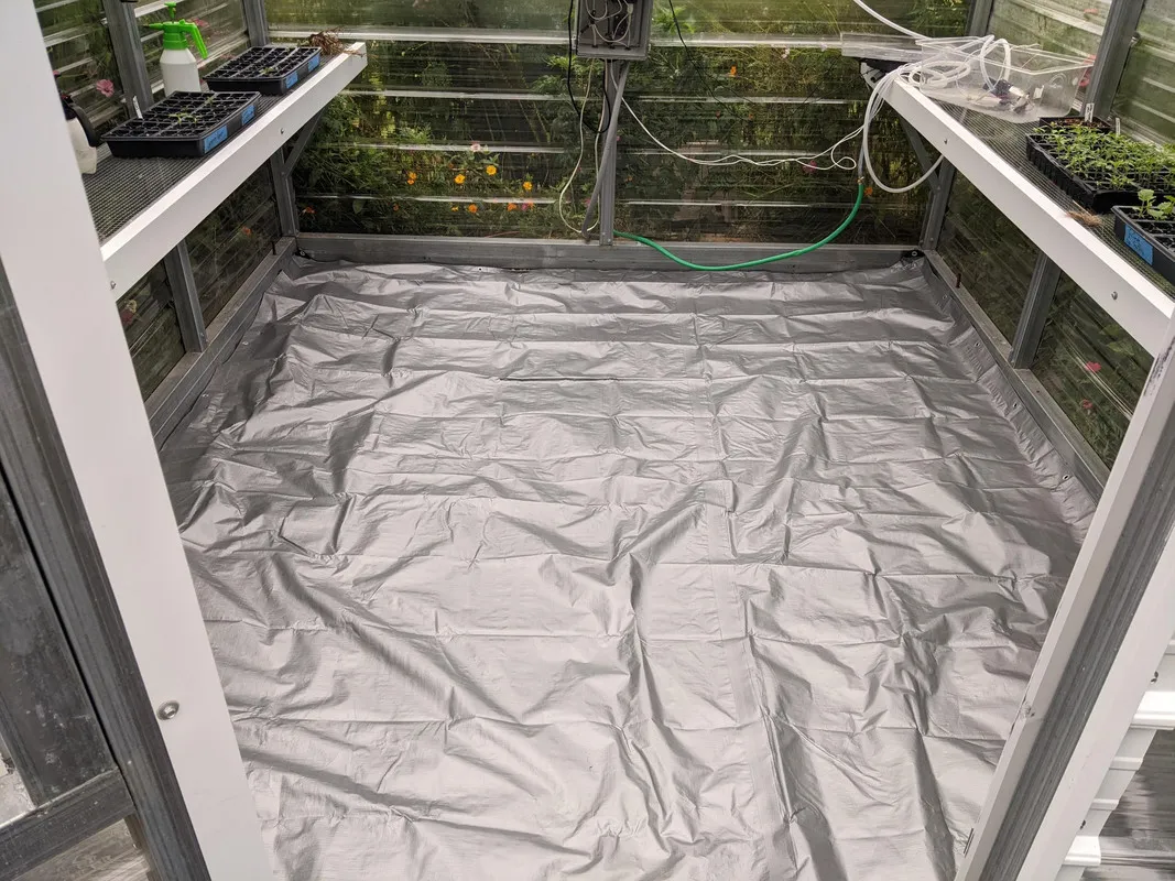 Getting a 10 mil thick tarp we will carefully lay it down across the floor of the green house and then cover it in gravel.