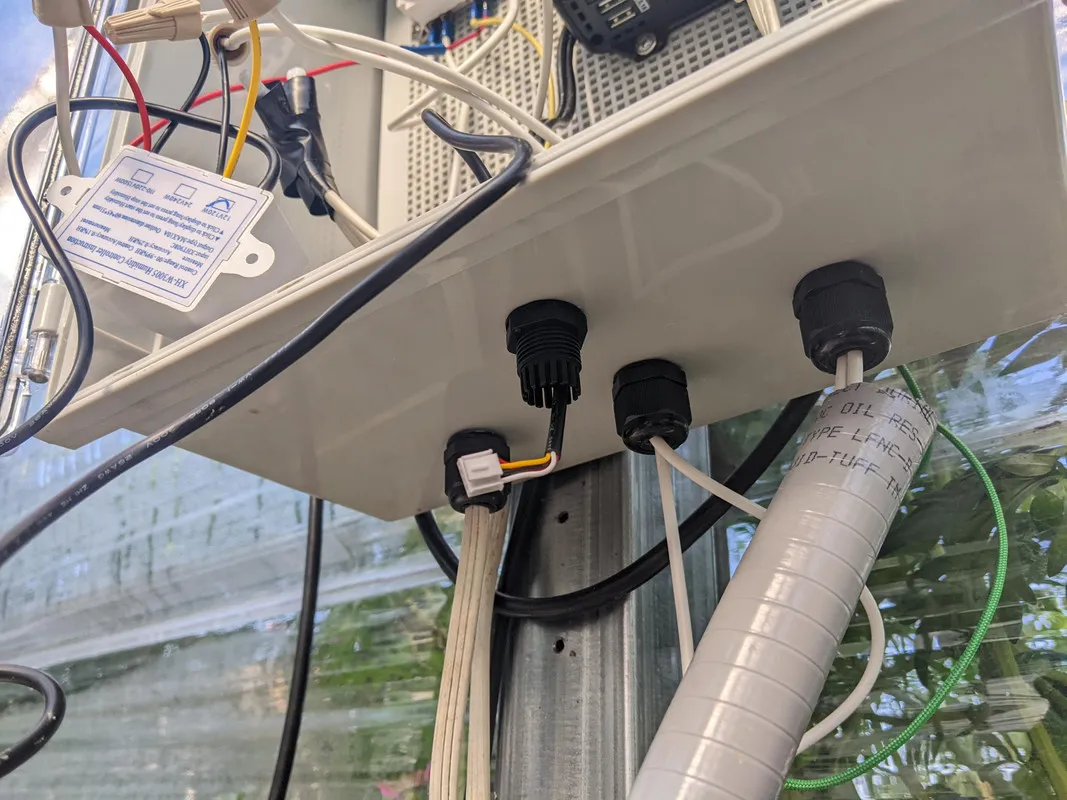 With it all passed through the enclosure I secure with wire nuts to test, and then follow up by taping it all together once I confirm it works.