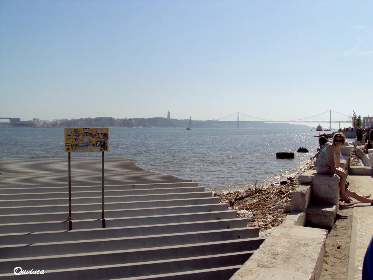 But going up or not going up we have the Tagus River, a square that literally ends in the water, with two columns that indicate the level of the water and where people come to relax, to look at the horizon (although Almada is on the other side and some beaches beyond, I'll tell you about it...).