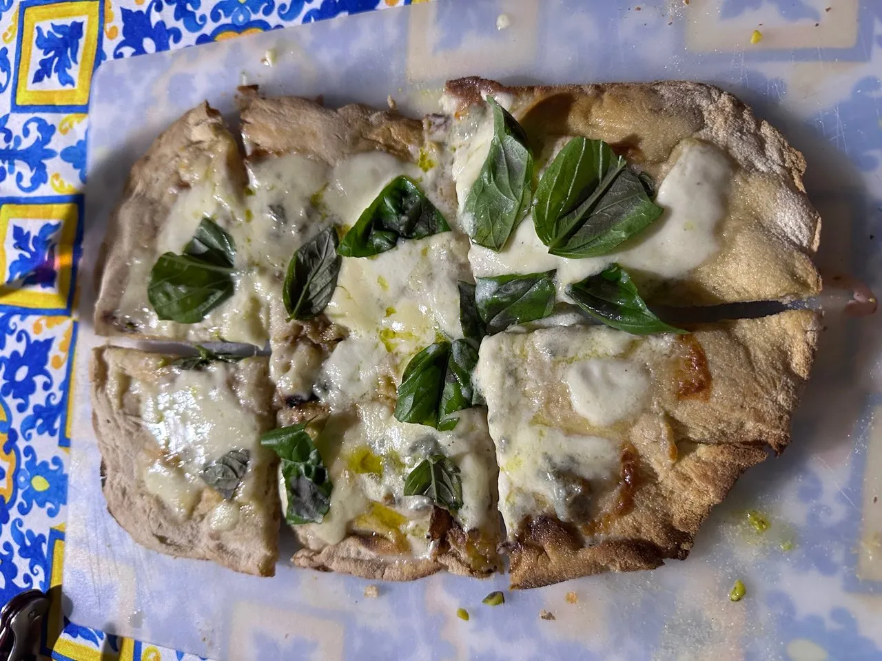 You can't miss the tasting of Italian dishes and here too I happened to be surprised, as this is not a pizza. This variety is called pinsa and it is delicious. It is a different concept in its preparation, since its dough is a mixture of wheat, soy and rice flour. More water and less yeast is used in the preparation of this dough than in pizza. This creates a very light and crispy dough.