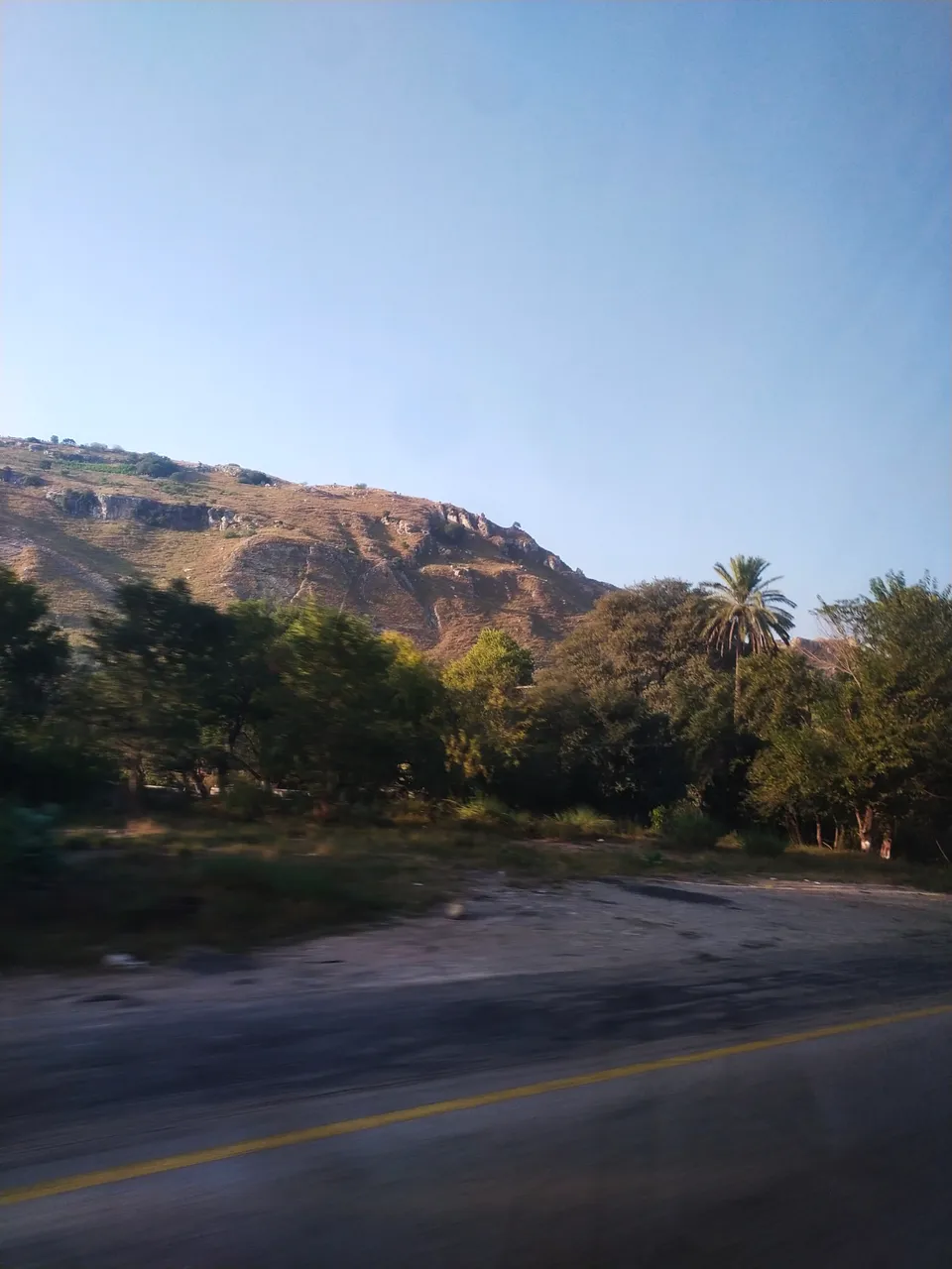 Around 7:30am we entered in kallar khahar, actually it's a hilly area of Pakistan. It's my favourite city too because you're surrounded by mountains and it's a peaceful place. Everyone who loved to mountain will surely love this place. Some round track's make us more excited abd happy among the mountains.