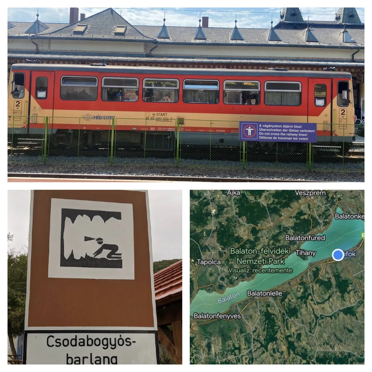 We had the objective to visit the Csodabogyós cave which was on the other side of the lake so we had to take a train from siofok to Balatongyörök which was the closest point to the cave, one of the problems was that we had to make a transfer and we received bad indications so when we got off at the Savoly station we literally ended up in a ghostly place in the middle of nowhere, scared waiting for a return train to show up, 2 hours passed and we still had no sign of any rescue from the train, we decided to call a cab line from the nearest town we could find and they informed us that it would cost 180 euros to the city, decided that we had no other option since we missed the reservation for the caves, we decided to accept the cab that would be arriving within 30 minutes but after 15 minutes a train showed up, relieved to save such an amount, we were able to return safe and sound to the city.