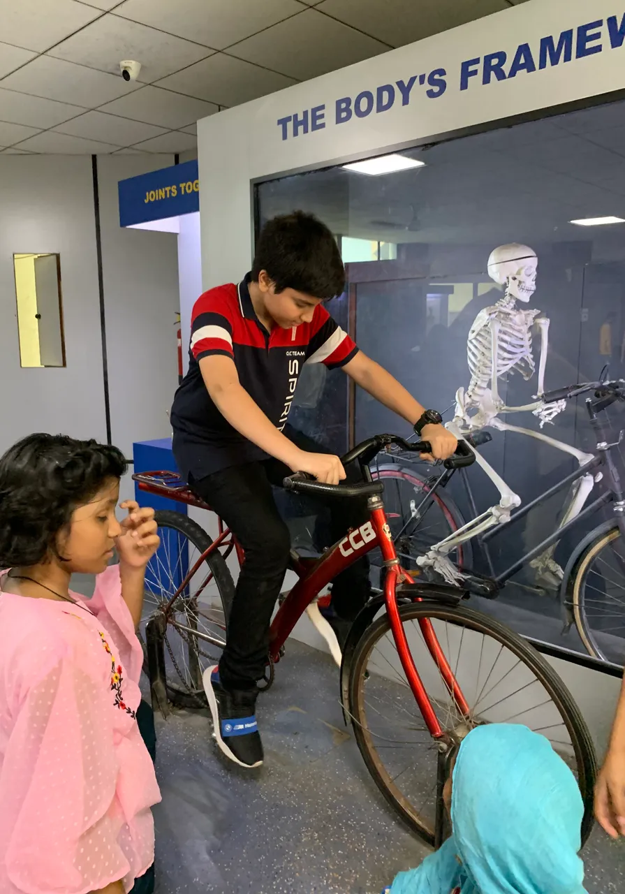 The science section of the museum offered a range of interactive exhibits that engaged visitors of all ages. We played the steady grip game, which tested our hand-eye coordination, and the body's framework game, where the skeleton moved along with our motions. My brother even had the opportunity to create a liquid painting, which was a unique and creative experience.