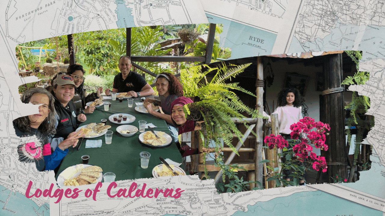 En el viaje al pueblo cafetalero Calderas, conocí dos posadas porque éramos muchos para estar en una sola, así que dividieron el grupo en dos y enviaron unos a la posada, el rincón de los sonidos y otros a donde yo me quede posada camino real que más adelante les cuento una anécdota. Los dos grupos compartimos en ambas posadas, visitándonos unos a otros, comiendo y divirtiéndonos, después de llegar de nuestros paseos y rutas, pero cada quien dormía a donde los asignaron. Mi posada era una casa antigua estilo colonial construida a las orillas de un río con bastante afluencia y toda la casa estaba construida en madera, para llegar a ella había que bajar unas cuantas escaleras y en la entrada estaba una piscina pequeña y muchos árboles con flores exóticas que nunca había visto, incluyendo la planta de café y el cacao, el espacio estaba dividido en dos, hacia abajo estaba una casa con un salón grande donde era el restaurante con un bar, y se colocan sillas al estilo campestre y más arriba había otro espacio donde estaba la cocina y también tenía mesas para comer, hacia la función de otro restaurante, este estaba rodeado de plantas muy lindas, rodeadas de helechos y distintos jades.