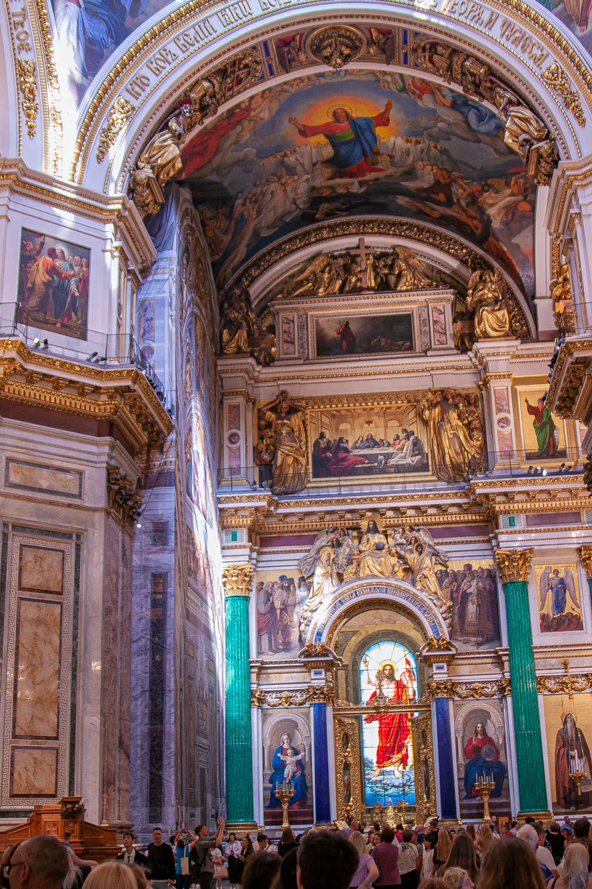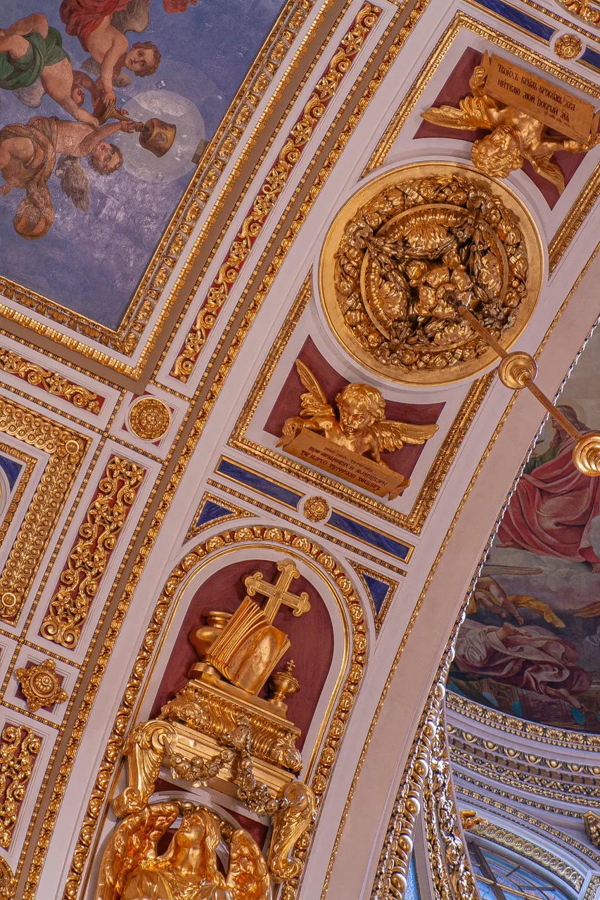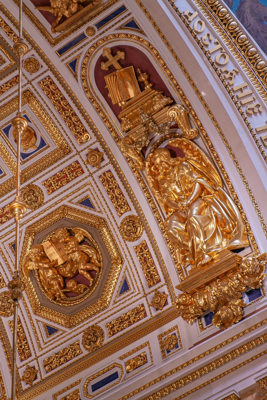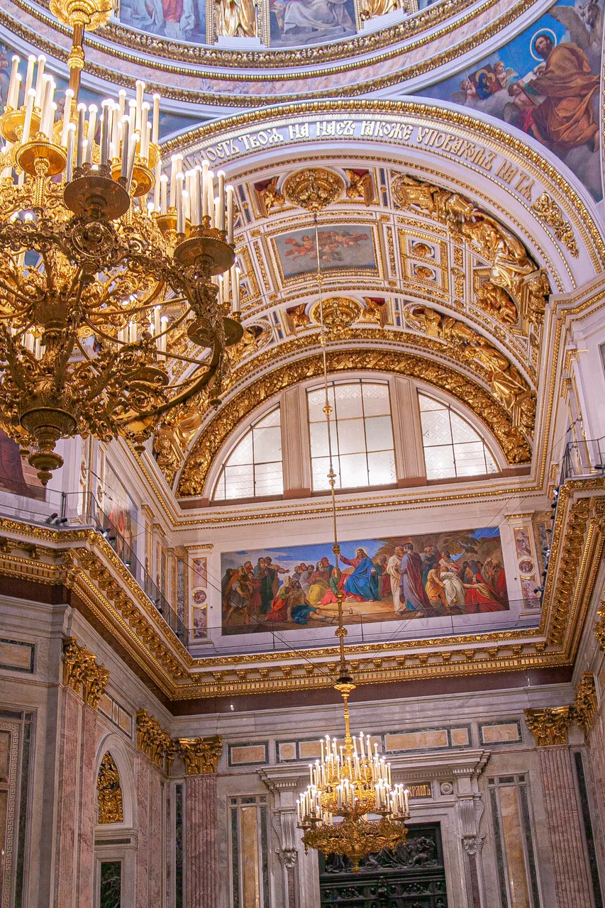 The fact that St. Isaac's Cathedral is primarily a museum is evidenced by the fact that there are showcases and visual stands everywhere, competently inscribed in the interior of the temple. You don't notice them until you specifically want to take a picture yourself.