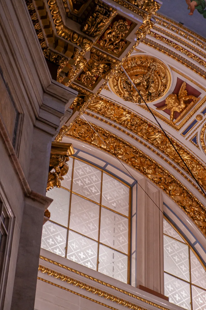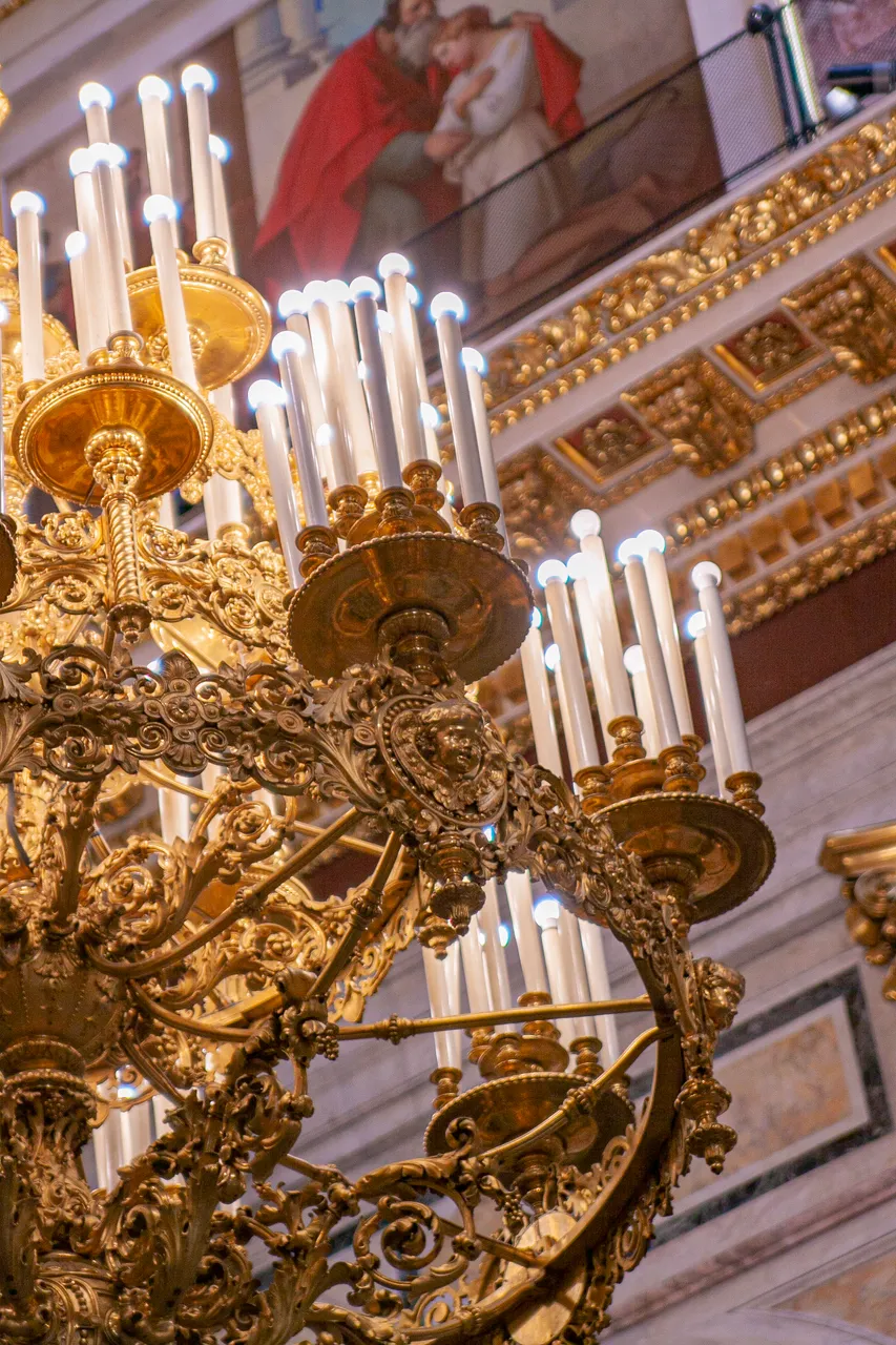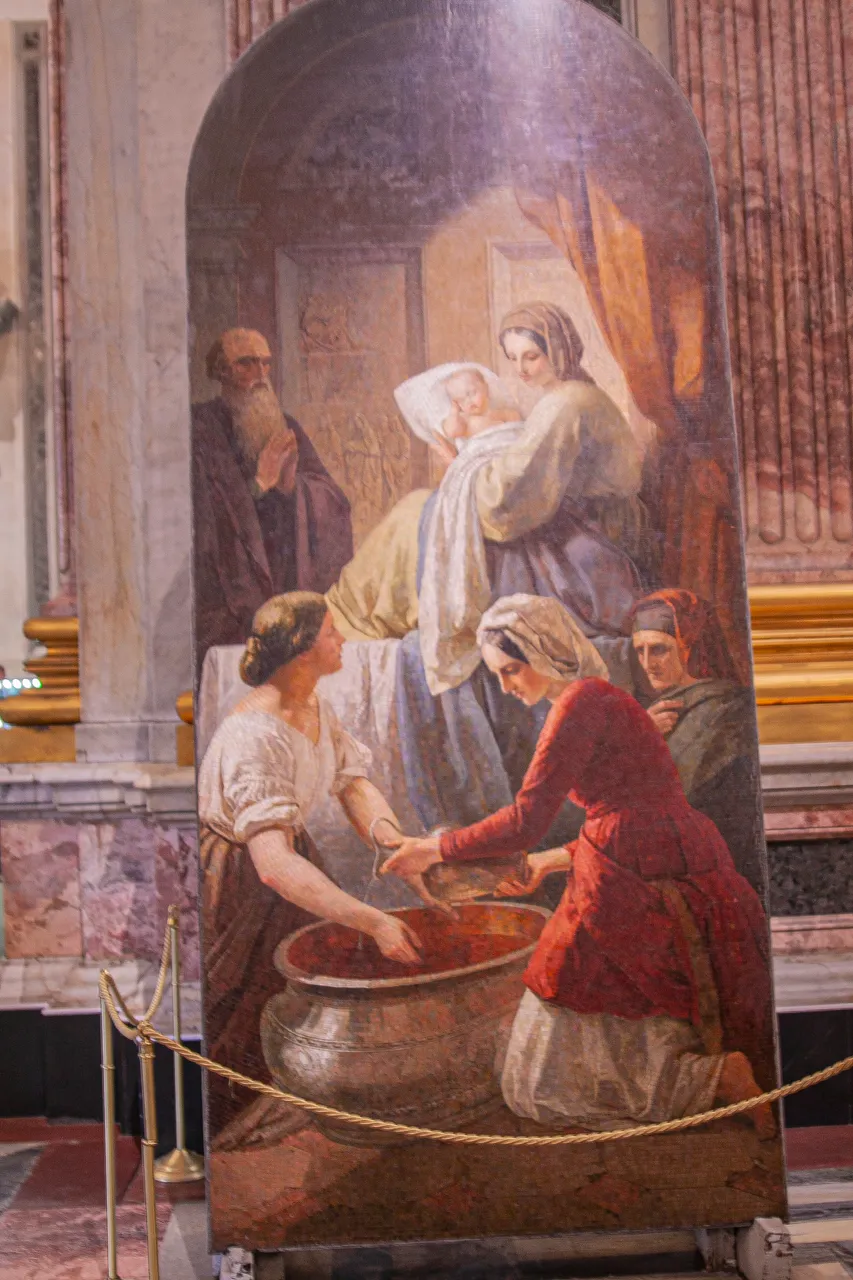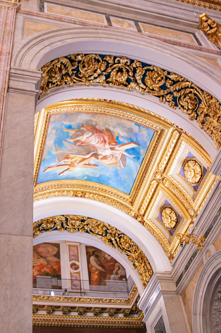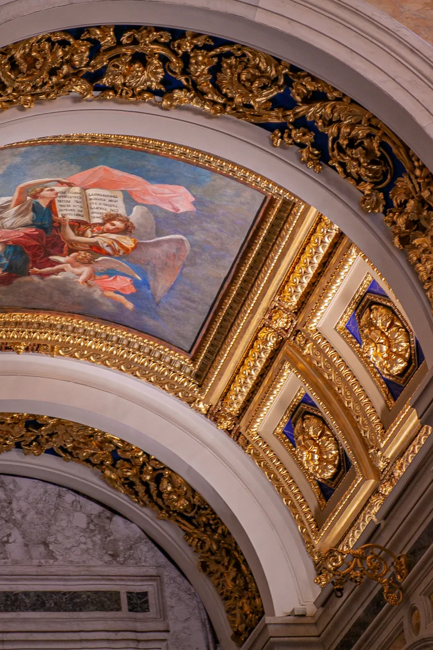 The fact that St. Isaac's Cathedral is primarily a museum is evidenced by the fact that there are showcases and visual stands everywhere, competently inscribed in the interior of the temple. You don't notice them until you specifically want to take a picture yourself.