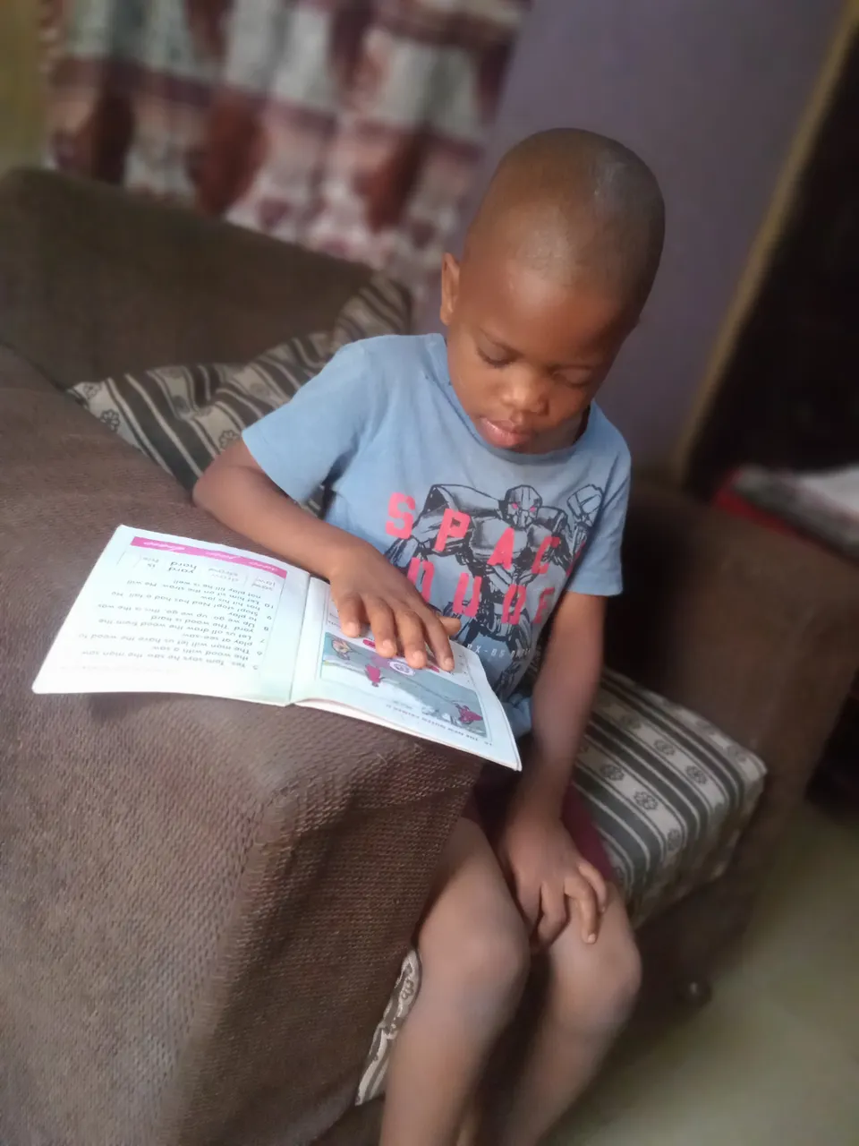 This queen primer is really helpful because I got the volume two last term for him and, it really has improved his spelling and reading abilities, last week I went to their school bookshop and got him a big comprehension book, the book contains a lot of comprehension passages for his age and I see that whenever he is with the book he always finds new words and he asks for the pronunciation, sometimes I ask him to use his sounds to spell it out or pronounce it and when he needs help I give it to him.
