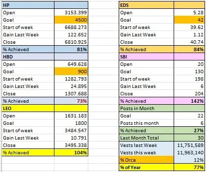 On a more positive note, everything else is on or over target, and both LEO and SBI's have already hit the goal. But in both cases I'm not going to stop doing what I'm doing. In the case of LEO, I'm happy with the rate at which rewards are arriving although I might need to buy some more in order to be able to meet the 150 LEO threshold for LPUD each month. As for SBI's, they're a small way in which I can give something back to the community, so there's no way I'm slowing up on those !