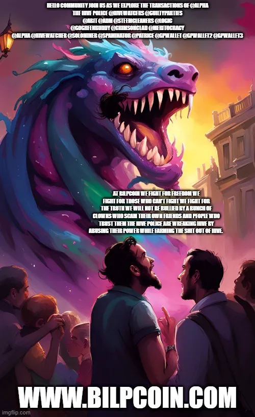 At Bilpcoin we fight for freedom we fight for those who can't fight we fight for the truth we will not be bullied by a bunch of clowns who scam their own friends and people who trust them the Hive Police are wreaking Hive by abusing their power while farming the shit out of Hive.