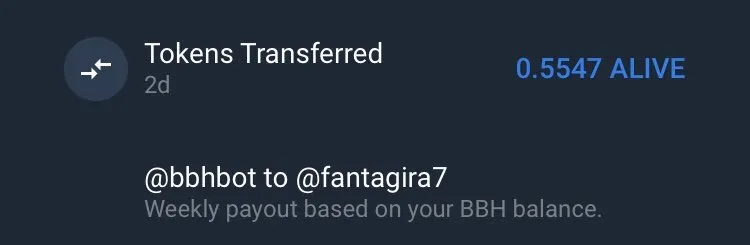And indeed, as I check my ALIVE wallet, I can see 0.5 extra from BBH bot.