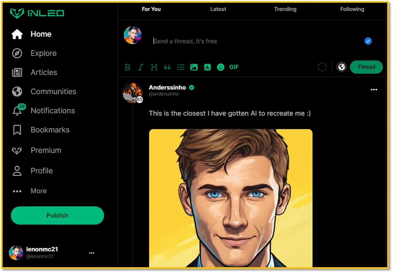 La información por lo general vieja mucho más rápido en formato corto que en el largo, un claro ejemplo de esto es el “Twitter” ahora llamado (X), pues el equipo de “Inleo” ya hace bastante tiempo implemento el contenido de formato corto tipo la plataforma mencionada anteriormente, por lo que, compartir tu día a día, tus pensamientos, algunas noticias o lo que quieras transmitir a la comunidad es posible con los “Threads” en Inleo, es muy fácil de usar y además tenemos algo que X no tiene; y es que cada “Thread” que hagamos tiene posibilidades de monetizar, en pocas palabras, podemos obtener ganancias al igual que en el formato largo.