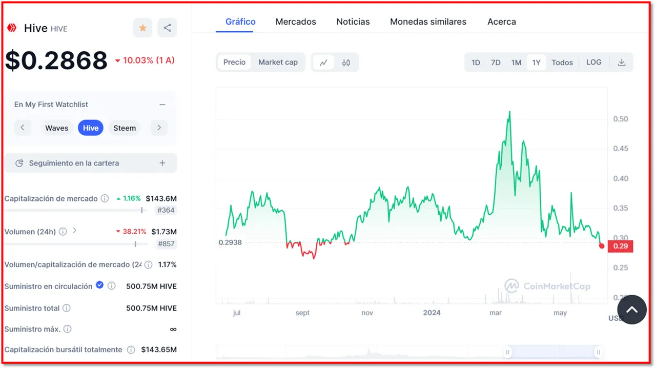 This image shows what has happened in a full year with the price of HIVE, we are currently at lows and this represents a good opportunity for many, including me who would like to have more HIVE, but, with the current (bullish market cycle), it would be ideal to see a growth in the price even if it is slow, however, this is not happening and the question we ask ourselves is why the price does not grow? Well, there are currently thousands of dollars circulating on a monthly basis from the DHF, which is Hive's DAO, which could be causing constant selling pressure on it.