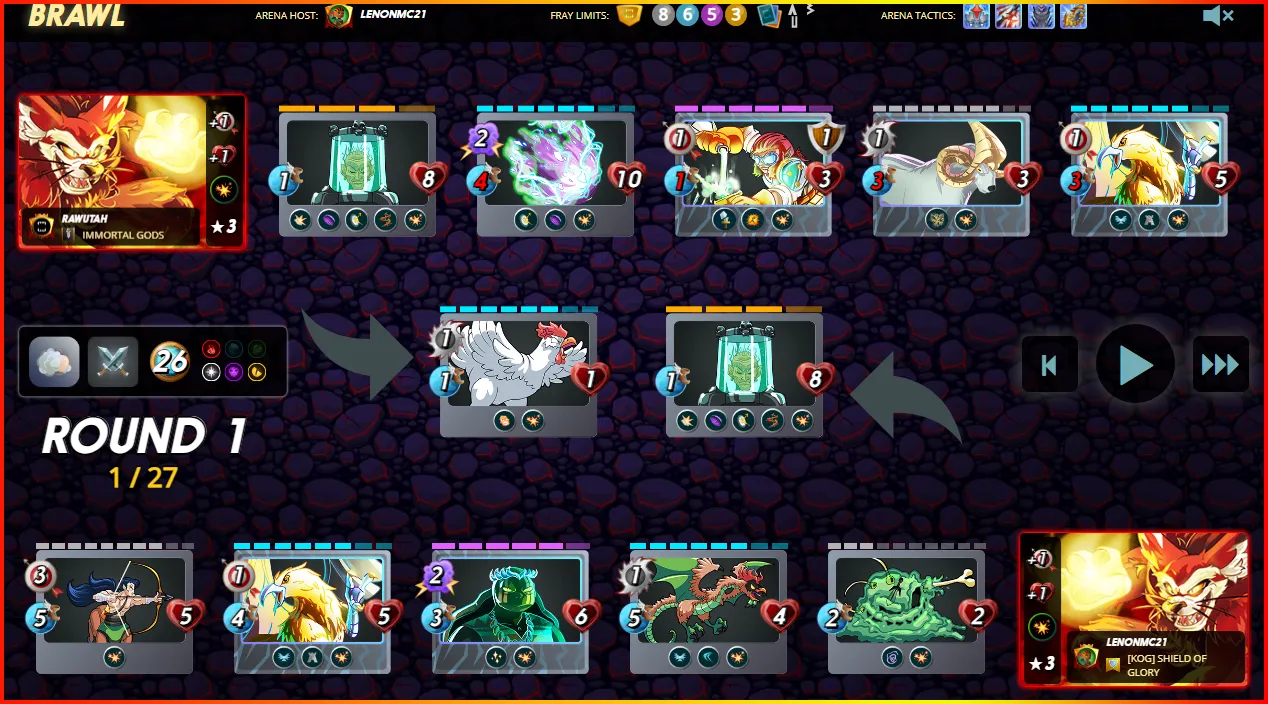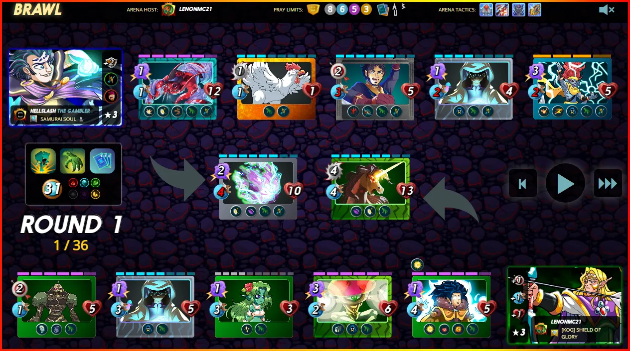 In previous cycles I had already been able to beat this player in Brawl", however, this did not allow me to trust, if you see well the conditions and rules of the battle, the only options available to play lay in the attack types of "Range and Magic"; and although I honestly like aggressiveness in terms of "Offensive", this did not work for me, so I changed my perspective and started to play more "Defensive", this made me get ahead of my opponent and play against magic attacks, combining "Mimosa" with "Silence" and 2 good battle tanks.