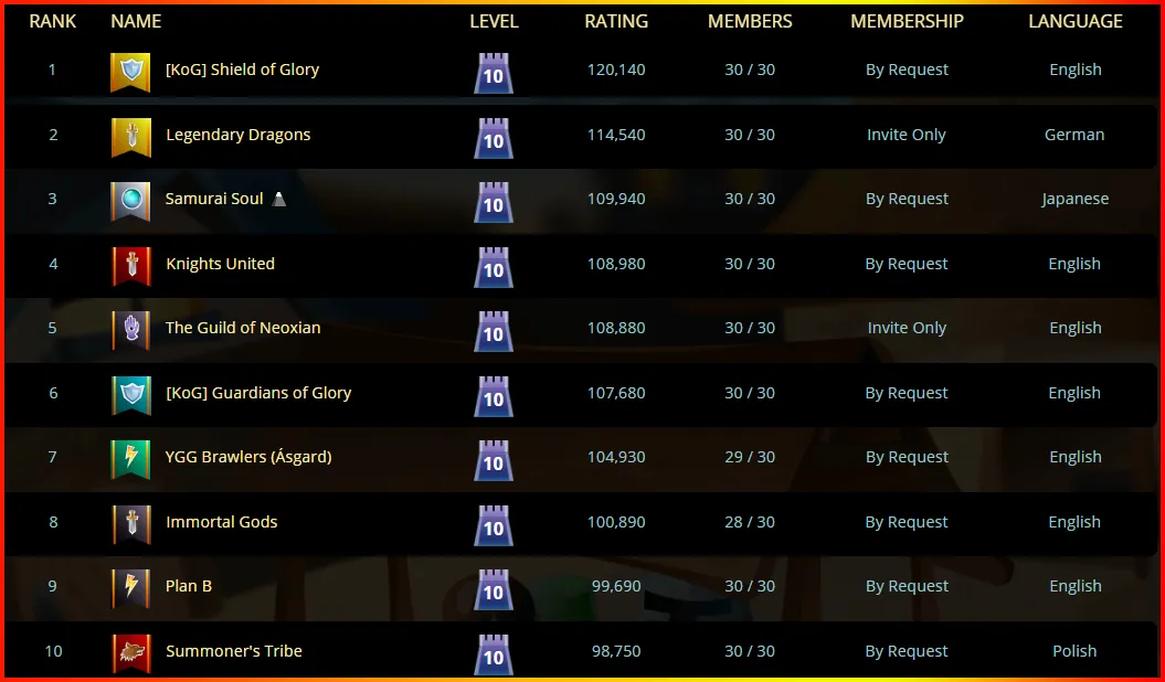 In the following image that I will share below, you will be able to observe the positioning of these guilds in the current table: