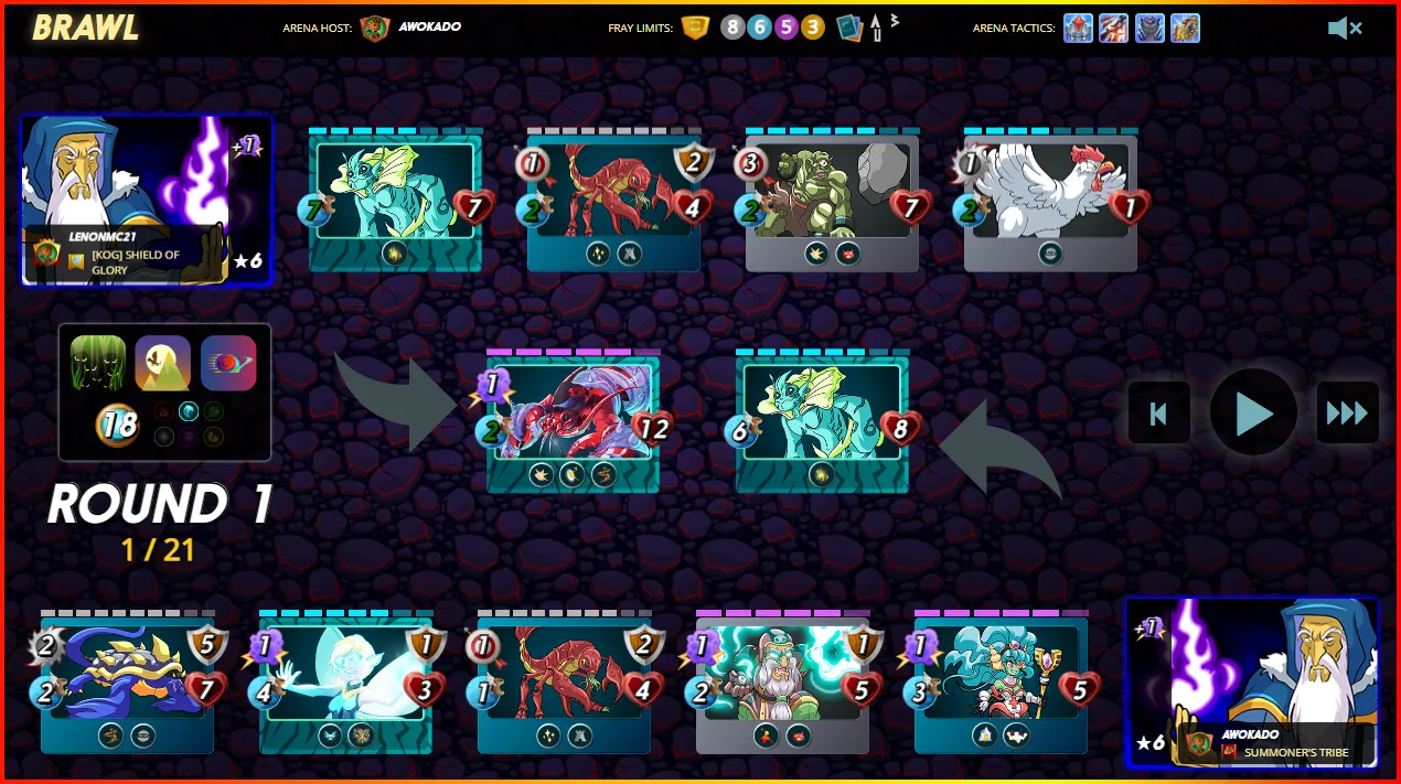 Playing against "Awokado" has always represented a challenge for me, if I had to qualify my opponents, without belittling any of them of course, I would say that "Awokado" is one of the most complicated to beat, in fact, his winning percentage in each "Cycle" is almost impeccable, however, despite these brilliant statistics on his part, in this opportunity I was able to beat him, besides, the conditions were very much in my favor at this point, since the only "Splinter" available was "Water" and with very little mana, the options were really reduced, this made our "Structures" very similar, but, the difference was made by my card "Lobstradamus".