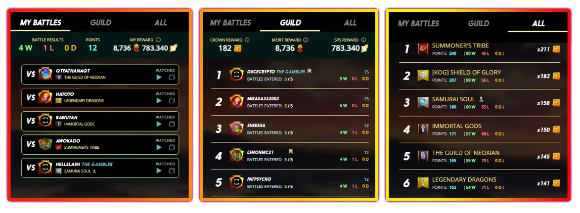 If you look at the 3 images above, I got a very good reward of 8736 "Merits" and 783,340 SPS, also, my performance in the battles placed me in the "Top 4" of the best battlers for the "Cycle 213" of Brawl, which is a pride for me, because, having a bad streak, there is always an opportunity to improve and show that you can be better, on the other hand, my "Guild" was 2nd for that cycle, being only below "Summoner's Tribe".