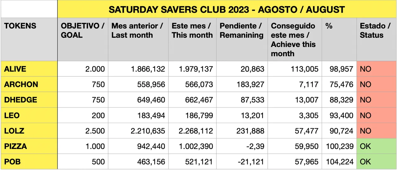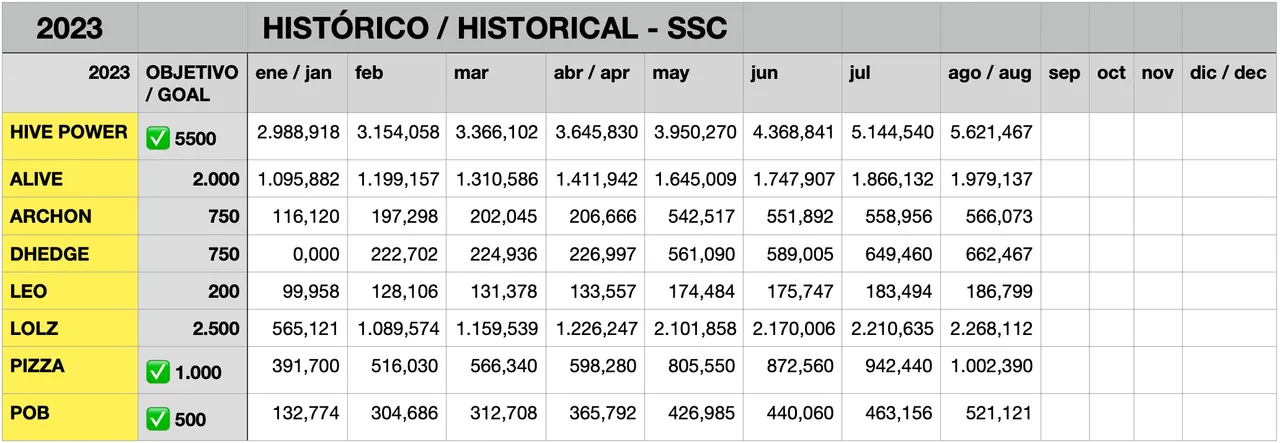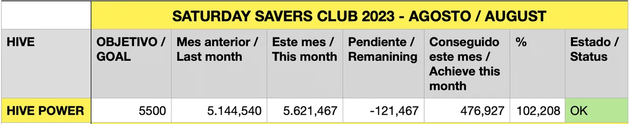 Este es mi informe de progreso para el Saturday Savers Club del año 2023. Los resultados que expongo corresponden al mes de agosto. Los datos se tomaron el 1 de septiembre por la mañana.