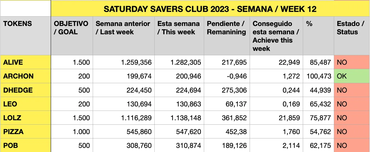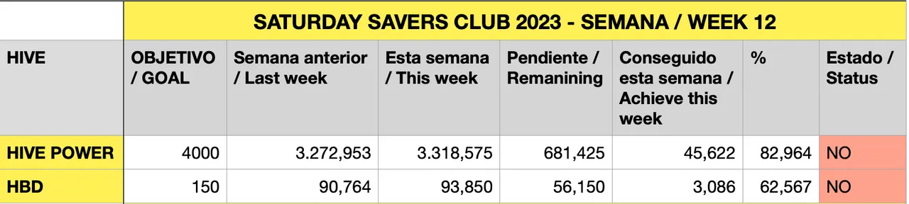 Este es mi informe de progreso para el Saturday Savers Club del año 2023. Los resultados que expongo corresponden a la semana 12. La fecha en la que se tomaron los datos fue el 25 de marzo.