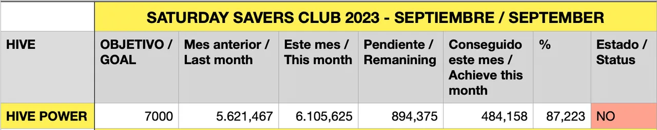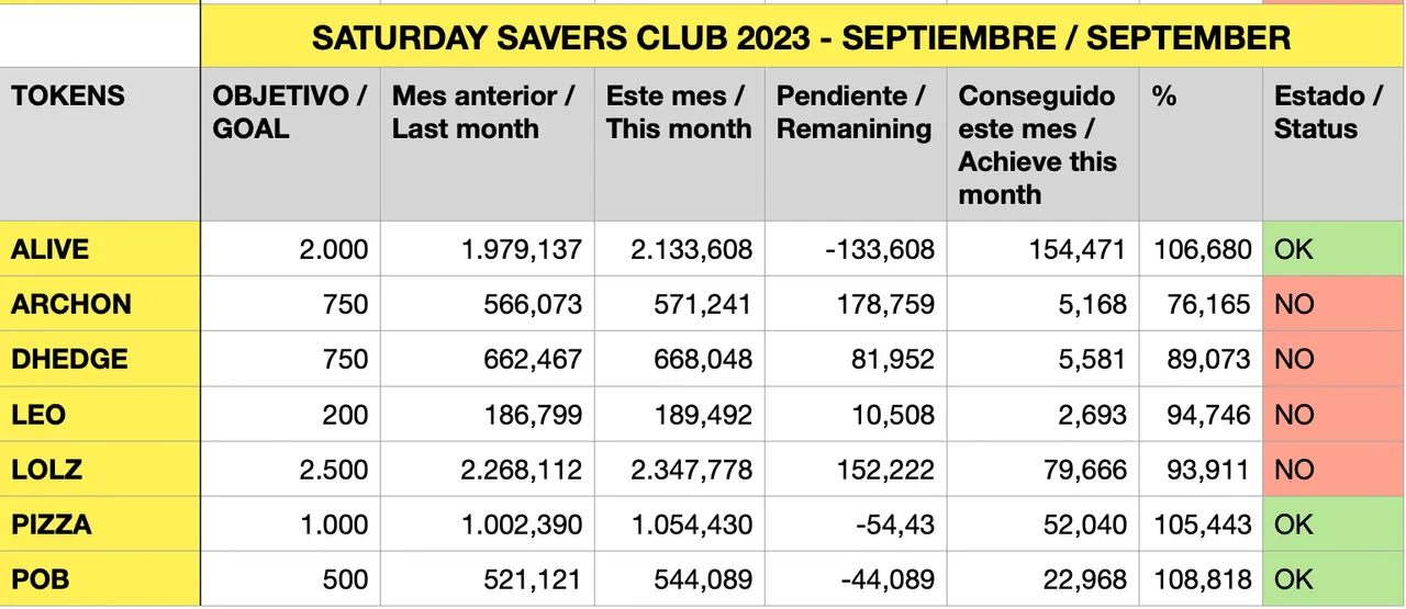 Este es mi informe de progreso para el Saturday Savers Club del año 2023. Los resultados que expongo corresponden al mes de septiembre. Los datos se tomaron el 1 de octubre por la mañana.