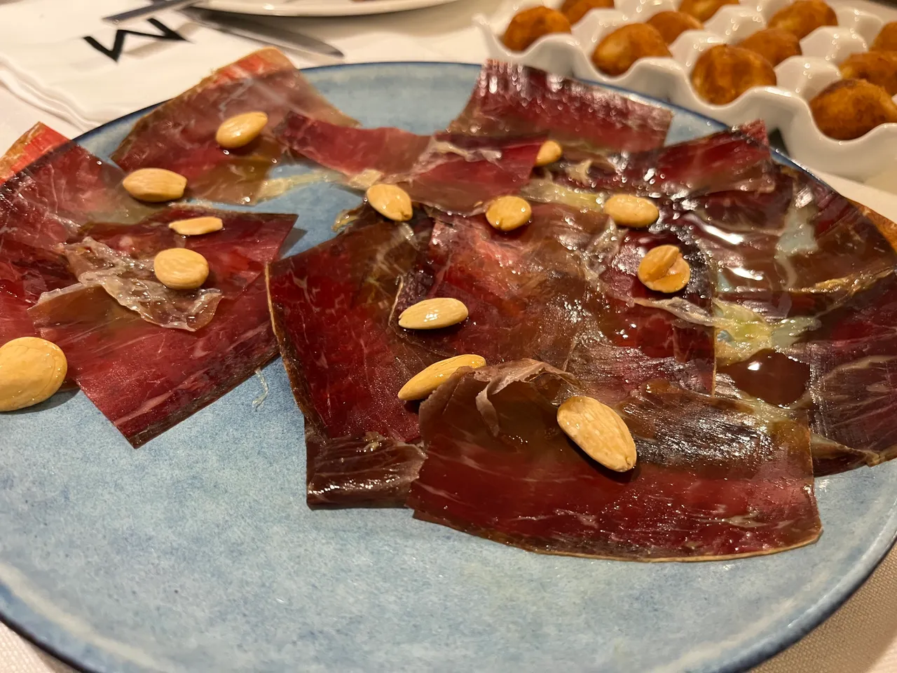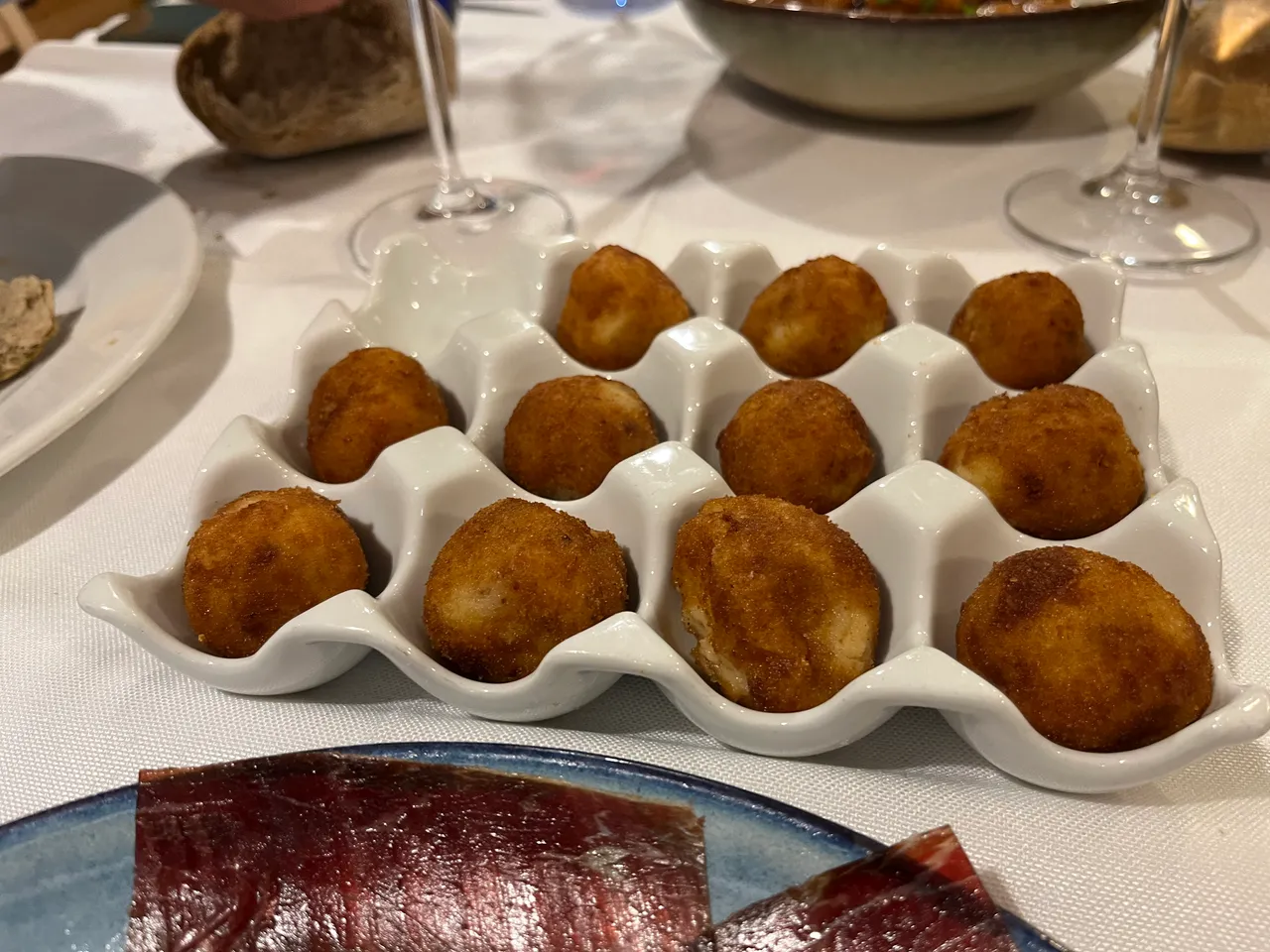 A classic tapas dish and even more so when Iberian ham is used in its preparation. I loved the design of the dish with its ideal shape for these round croquettes.