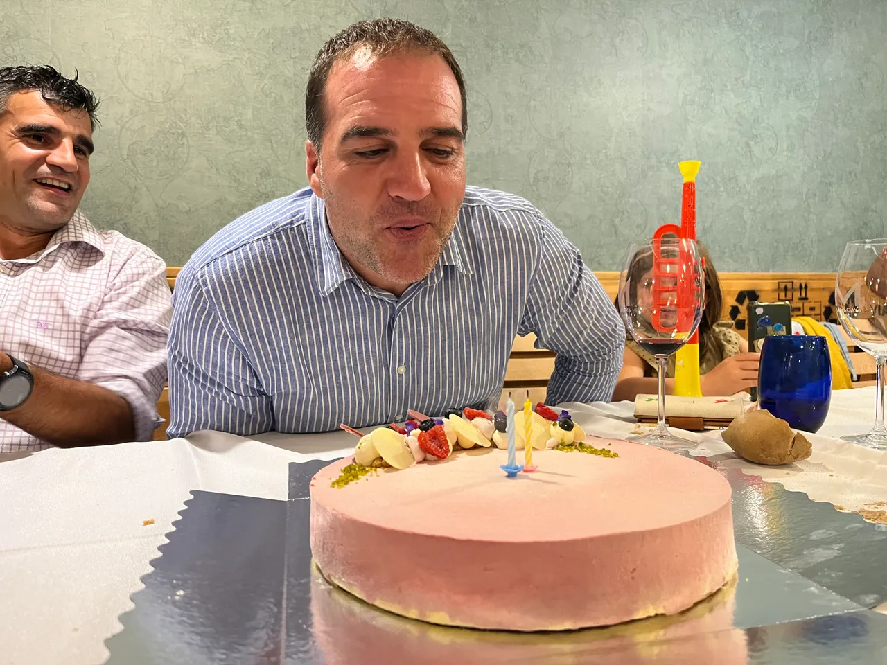 Javiera, Javier's wife and daughter arrived at the restaurant without Javier knowing anything about the celebration and when he entered the restaurant his face was astonished to see that we had gathered 16 people behind him, all of us together with his wife.