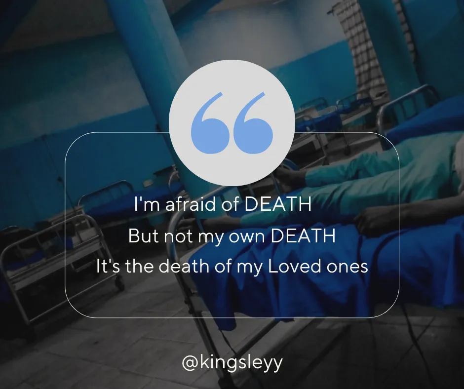One thing I'm deeply scared of is DEATH but not my own death. I'm talking about the DEATH OF LOVED ONES.