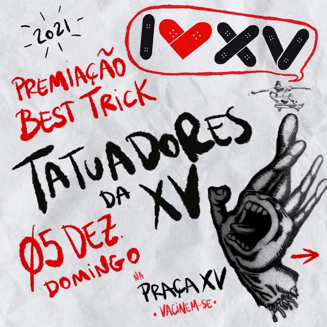 The I ♥️ XV is the annual celebration of #ColetivoXV, which this year celebrates 10 Years of Free Skate at Praça XV and is back after 2 years with a schedule full of skateboarding, art and street culture. Just come and have fun with responsibility and respect! 🤟🏻🏳️🌈