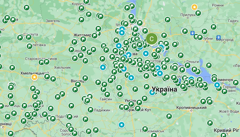 Моя мапа з точками інтересу (POI) на Google Maps |