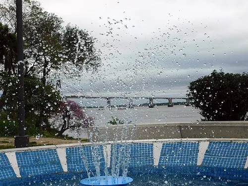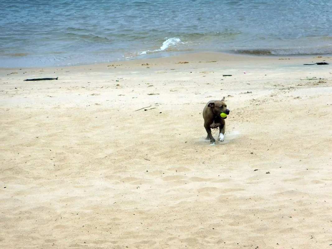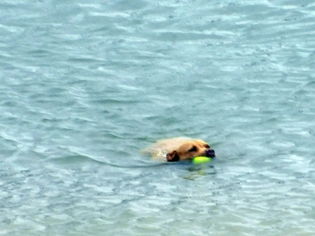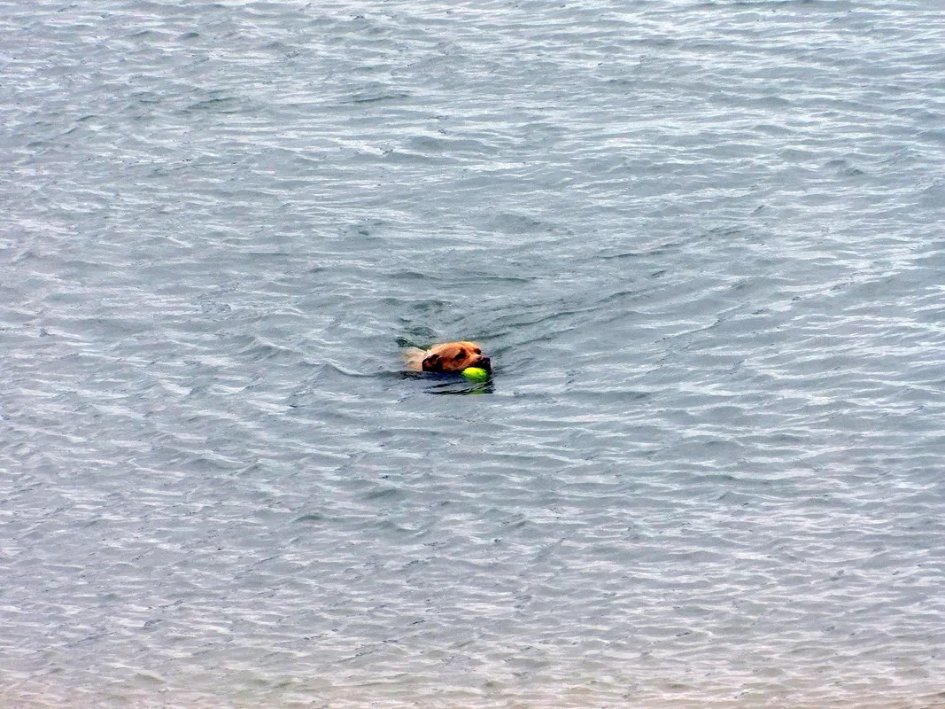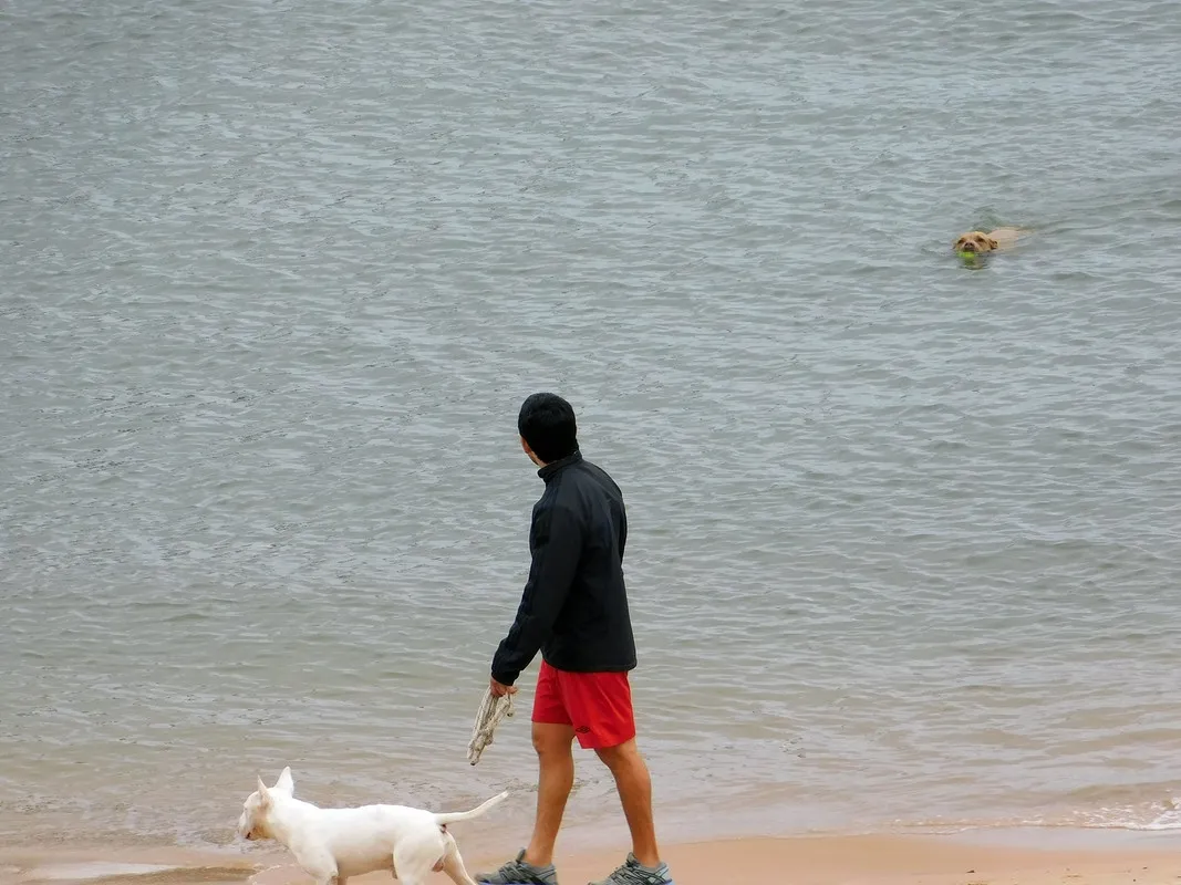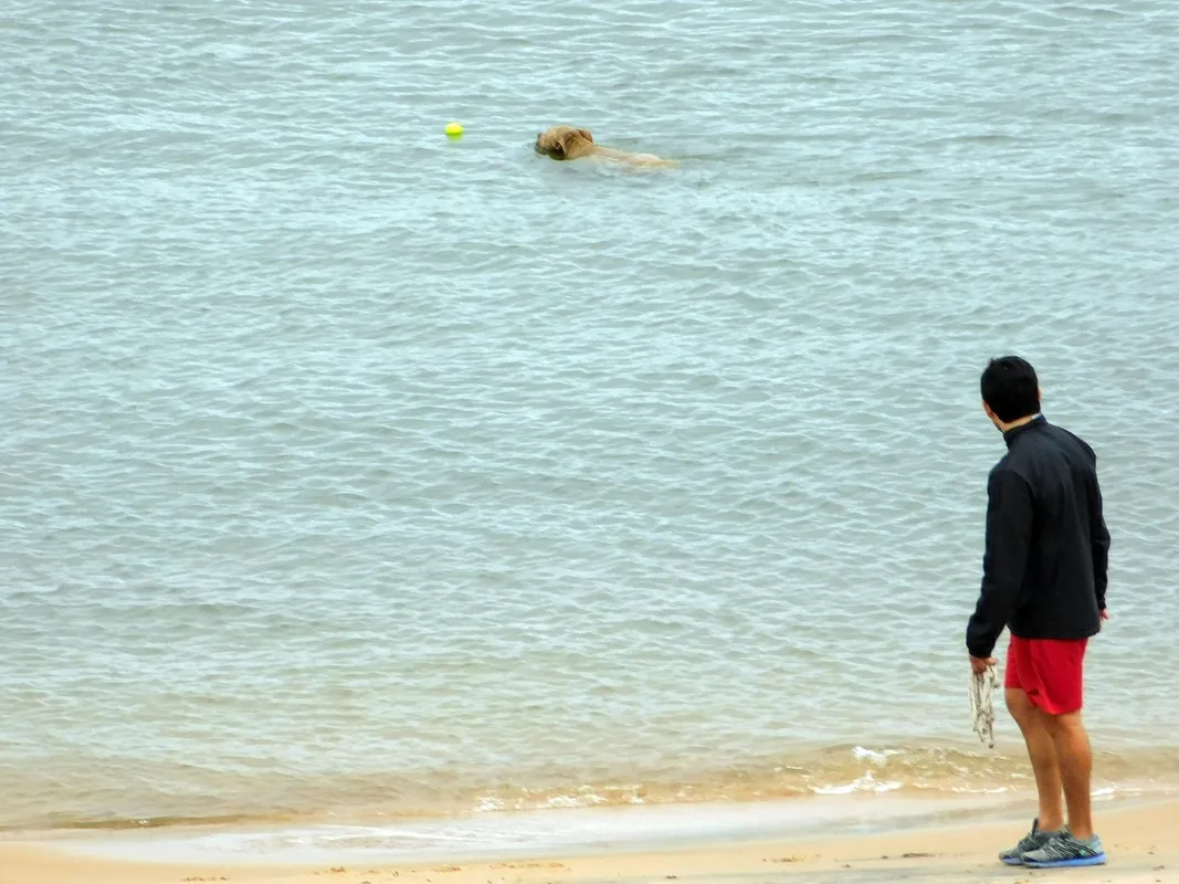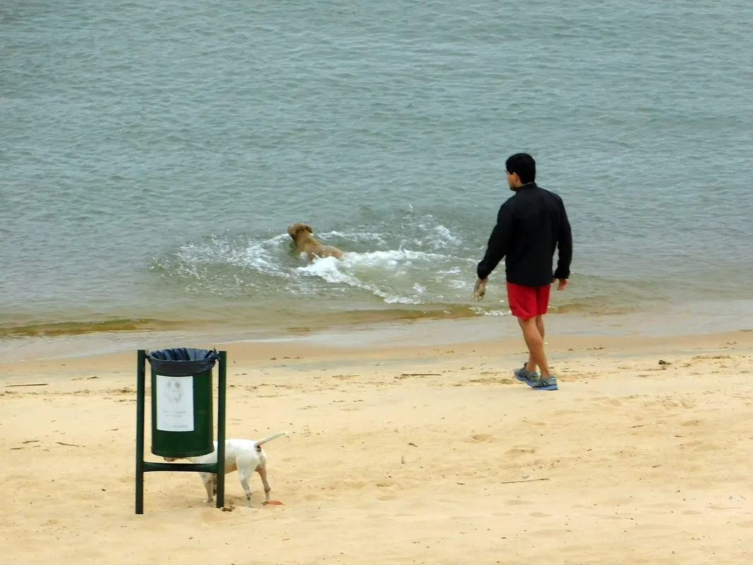 Este año se ha aprobado una ley para que en una de las tantas playas que hay en el centro de la ciudad se permitirán el ingreso de las mascotas a las aguas del rio, y desde entonces, los paseadores y entrenadores de perros llevan a sus mascotas a divertirse en el agua. En esta ocasión tuvimos la oportunidad de ver como el entrenador arroja una pelota al agua y el animal sale corriendo para ingresar al agua y nadar para recuperar el balón. No estoy seguro si es una actividad riesgosa para el animal, pero por lo que vi, el perro se está divirtiendo mucho