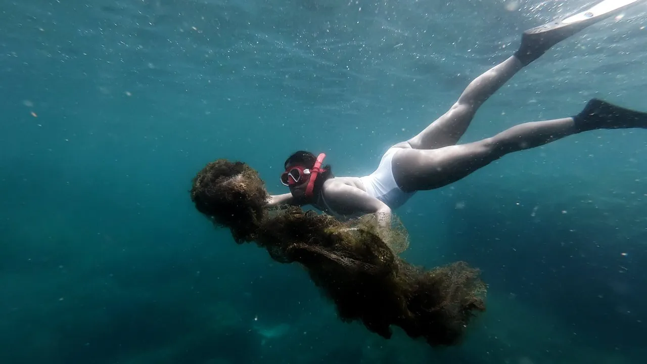 Ghost nets are made of rope or nylon forgotten in the sea or ocean. These ghost nets although not in use can still harm the marine ecosystem. Fishes might still be caught in it or corals will be covered by it and disrupt the marine life's home. My heart couldn't bear to just swim by. I assessed if removing the nets were doable and it seemed like it. Although there were parts really stuck hard on the corals so we really had to be slow and careful.