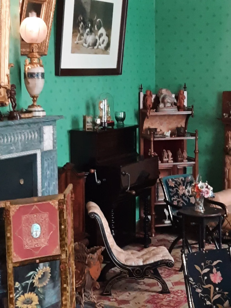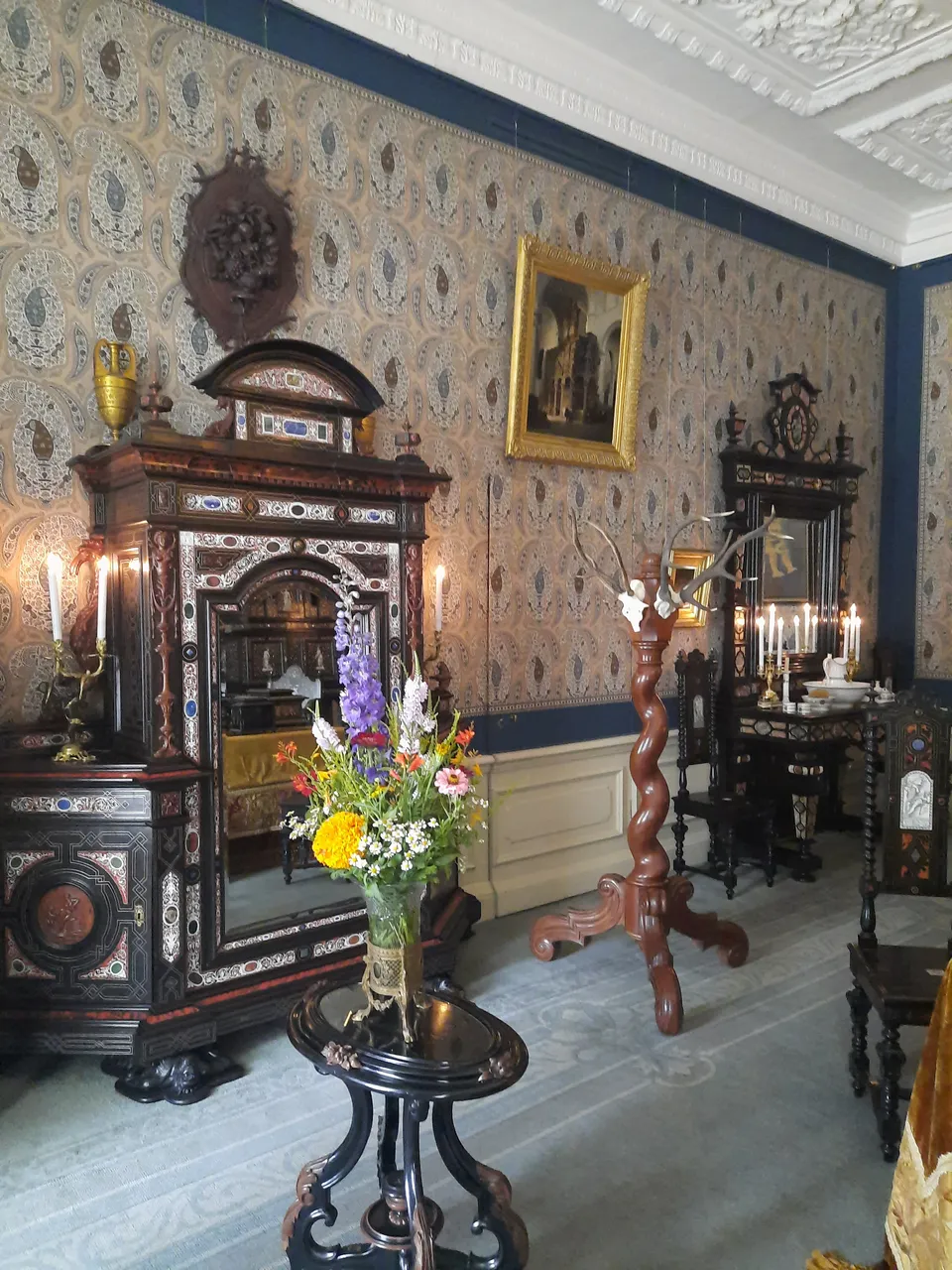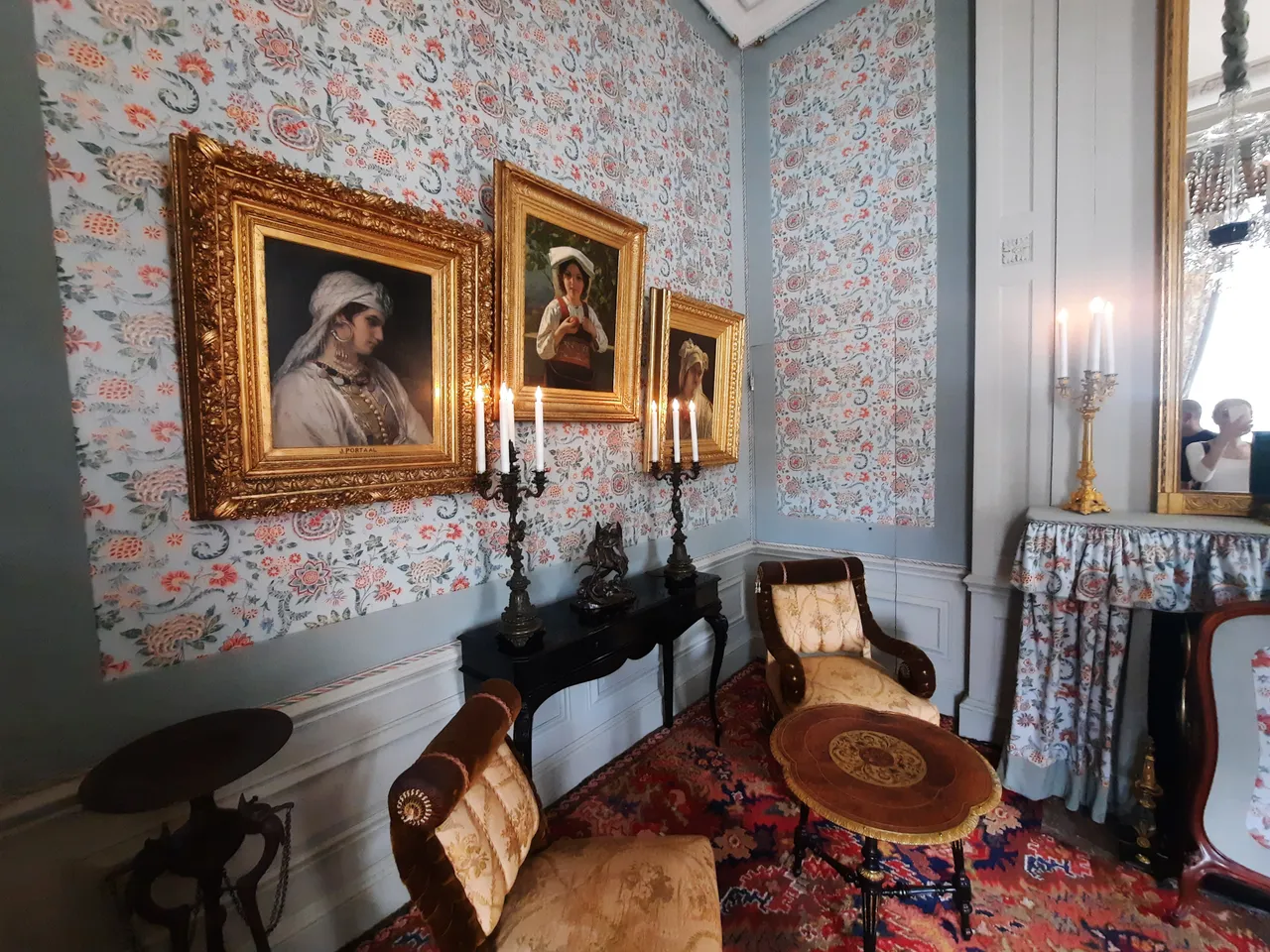 You can tell whether the room belonged to a woman or a man by the décor. Women's apartments have lighter colours on the walls, lots of interesting trinkets on the tables and chests of drawers, and heavy curtains tied with original laces. Men's apartments are more restrained. They are dominated by muted dark colours.